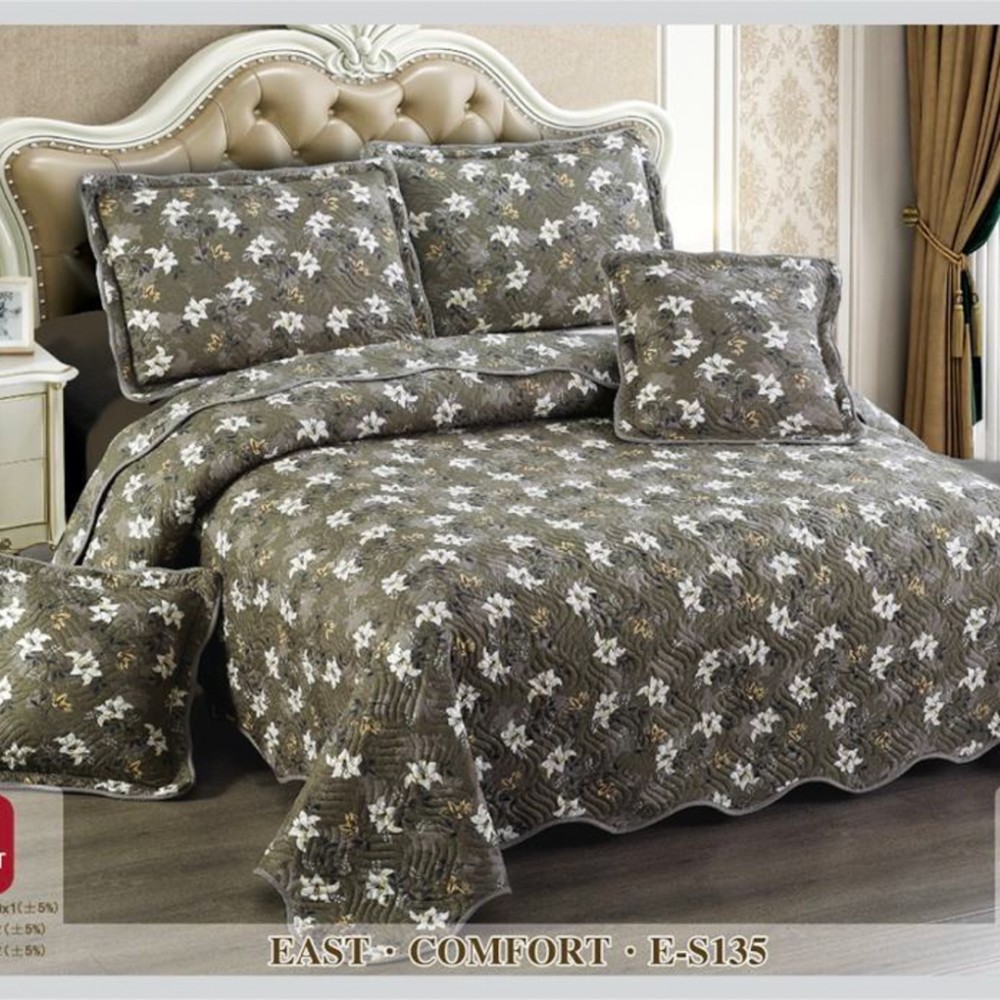 Cuvertura matlasata 230x250cm si 4 fete de perna, Bumbac, Gri, flori, East Romania, cod produs: EST-E-S135