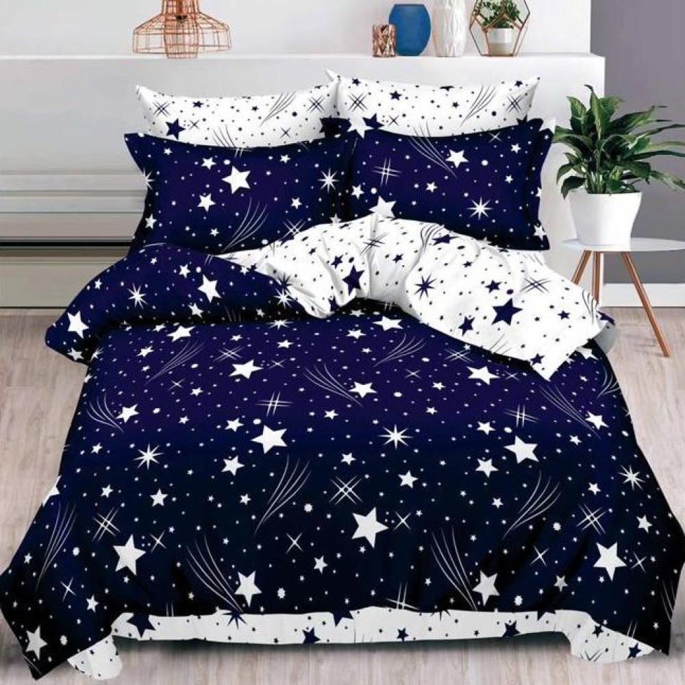 Lenjerie pat dublu (140x200cm, 160x200cm, 180x200cm), FINET, 6 piese, Albastru, stelute, Johny Home Pucioasa, cod produs: SPR-R60-162