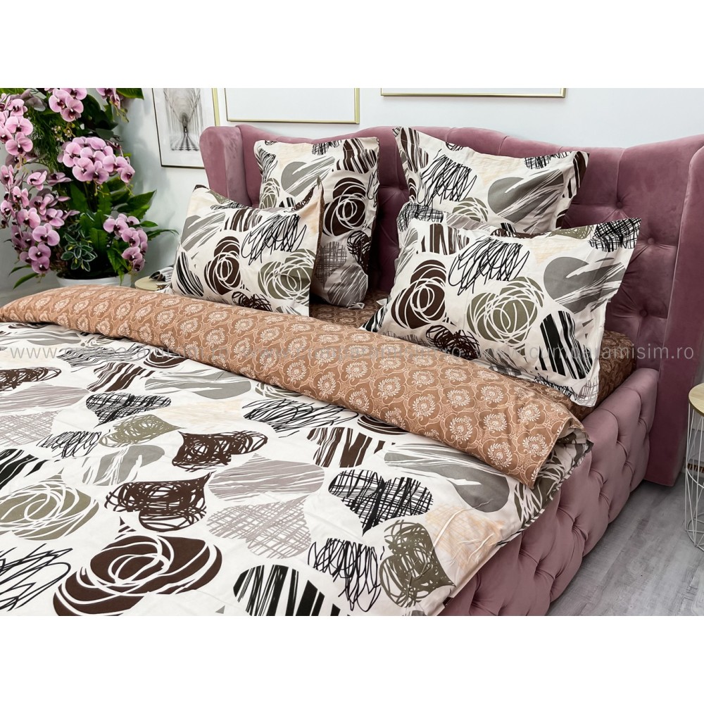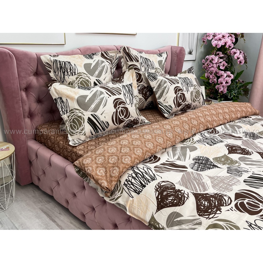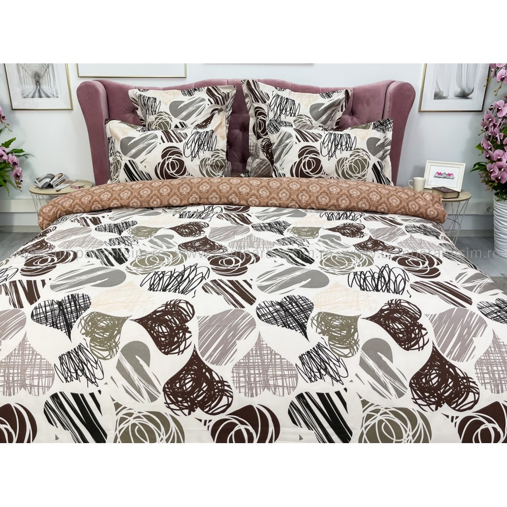 Lenjerie pat dublu (140x200cm, 160x200cm, 180x200cm), FINET, 6 piese, Maro, inimioare, Johny Home Pucioasa, cod produs: SPR-R60-316