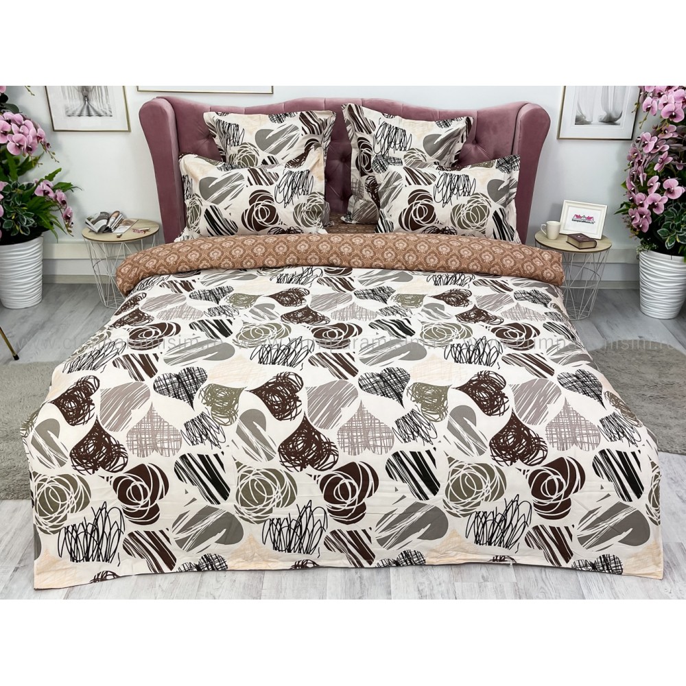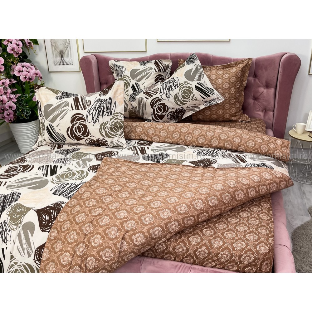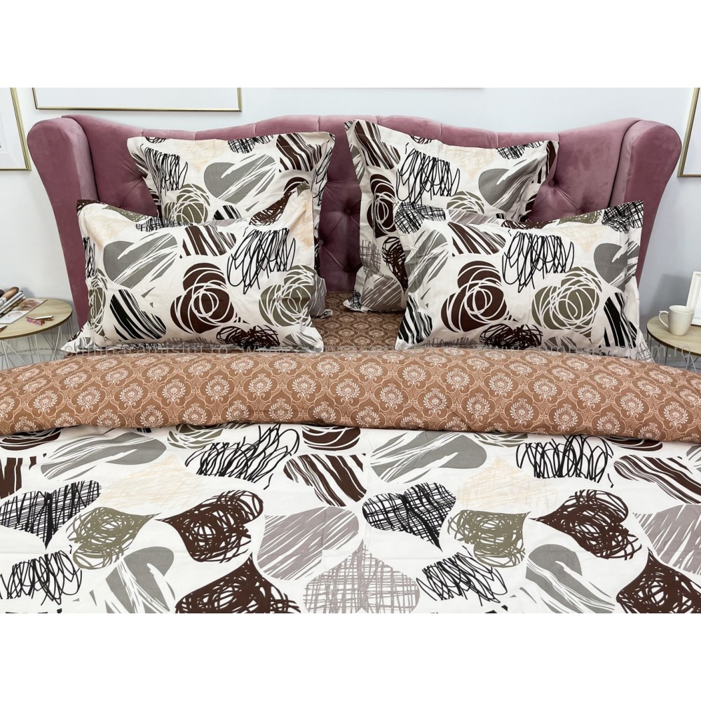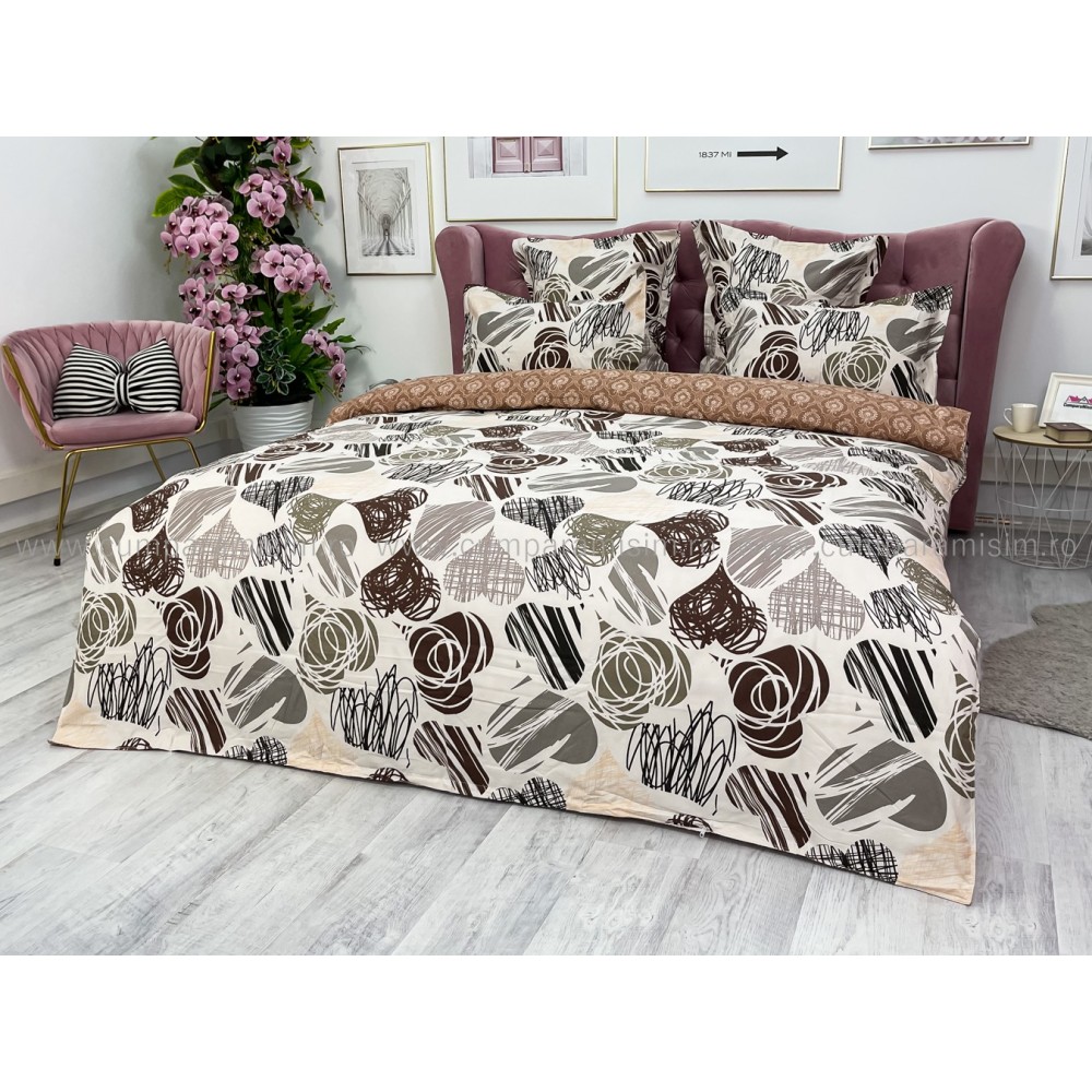 Lenjerie pat dublu (140x200cm, 160x200cm, 180x200cm), FINET, 6 piese, Maro, inimioare, Johny Home Pucioasa, cod produs: SPR-R60-316