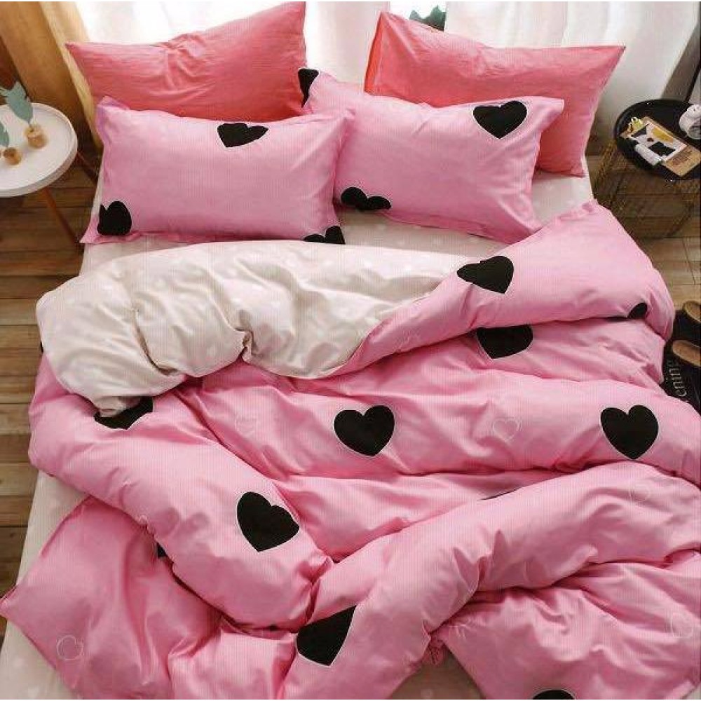 Lenjerie pat dublu (140x200cm, 160x200cm, 180x200cm), FINET, 6 piese, Roz, inimioare, Johny Home Pucioasa, cod produs: SPR-R60-359