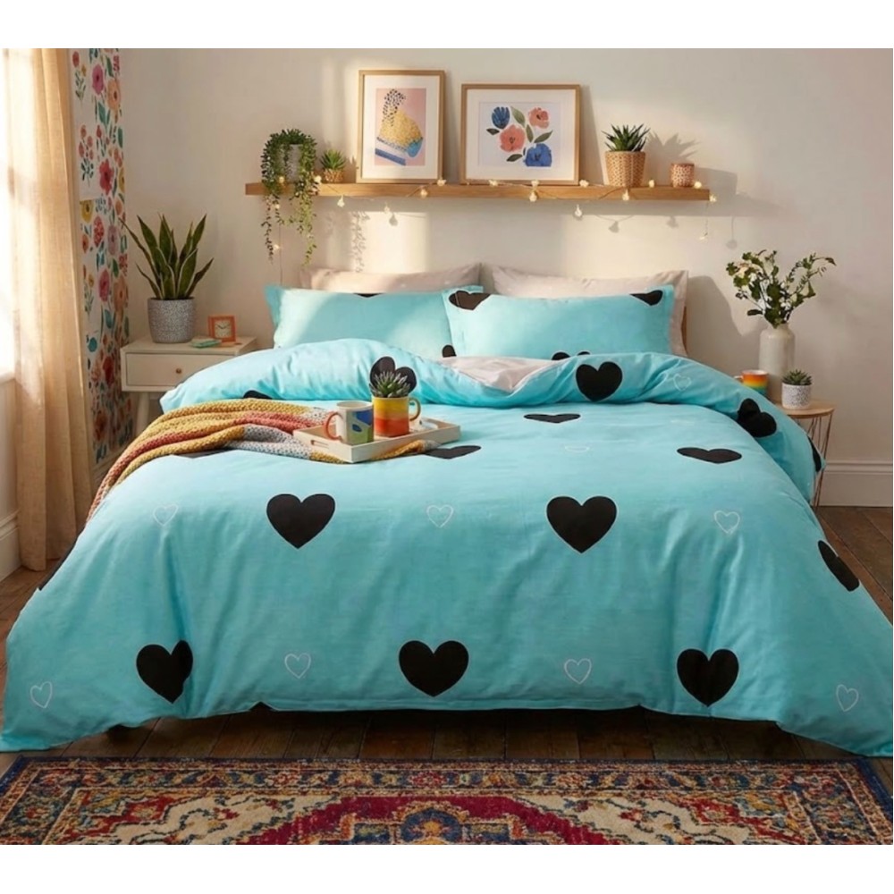 Lenjerie pat dublu, Finet, 6 piese, Bleu, inimioare, Johny Home Pucioasa, cod produs: SPR-R60-360