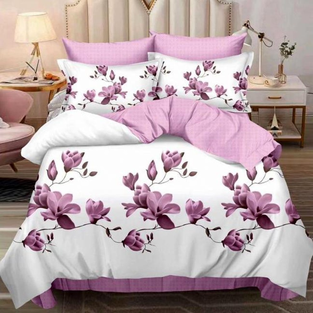 Lenjerie pat dublu (140x200cm, 160x200cm, 180x200cm), FINET, 6 piese, Roz, magnolii, Johny Home Pucioasa, cod produs: SPR-R60-394