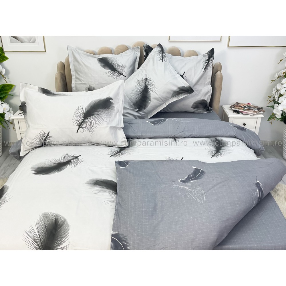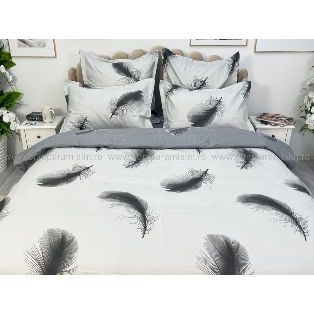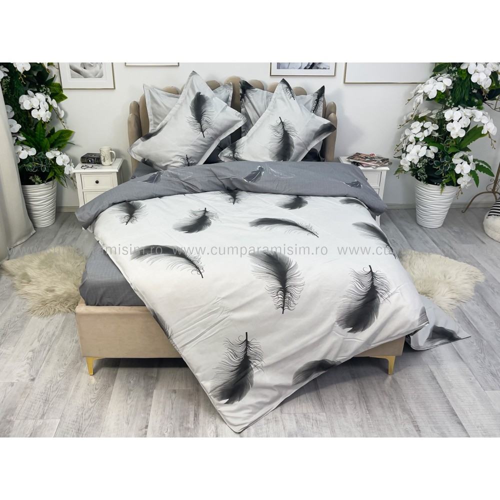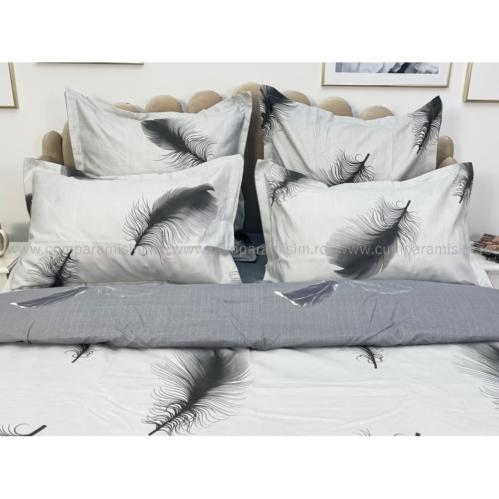 Lenjerie pat dublu (140x200cm, 160x200cm, 180x200cm), FINET, 6 piese, Gri, pene, Johny Home Pucioasa, cod produs: SPR-R60-436