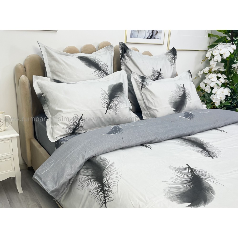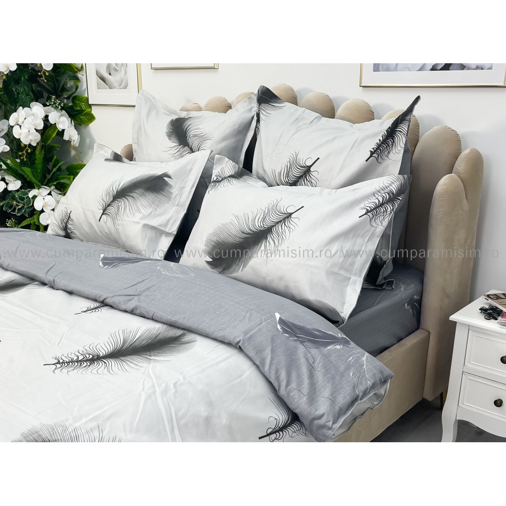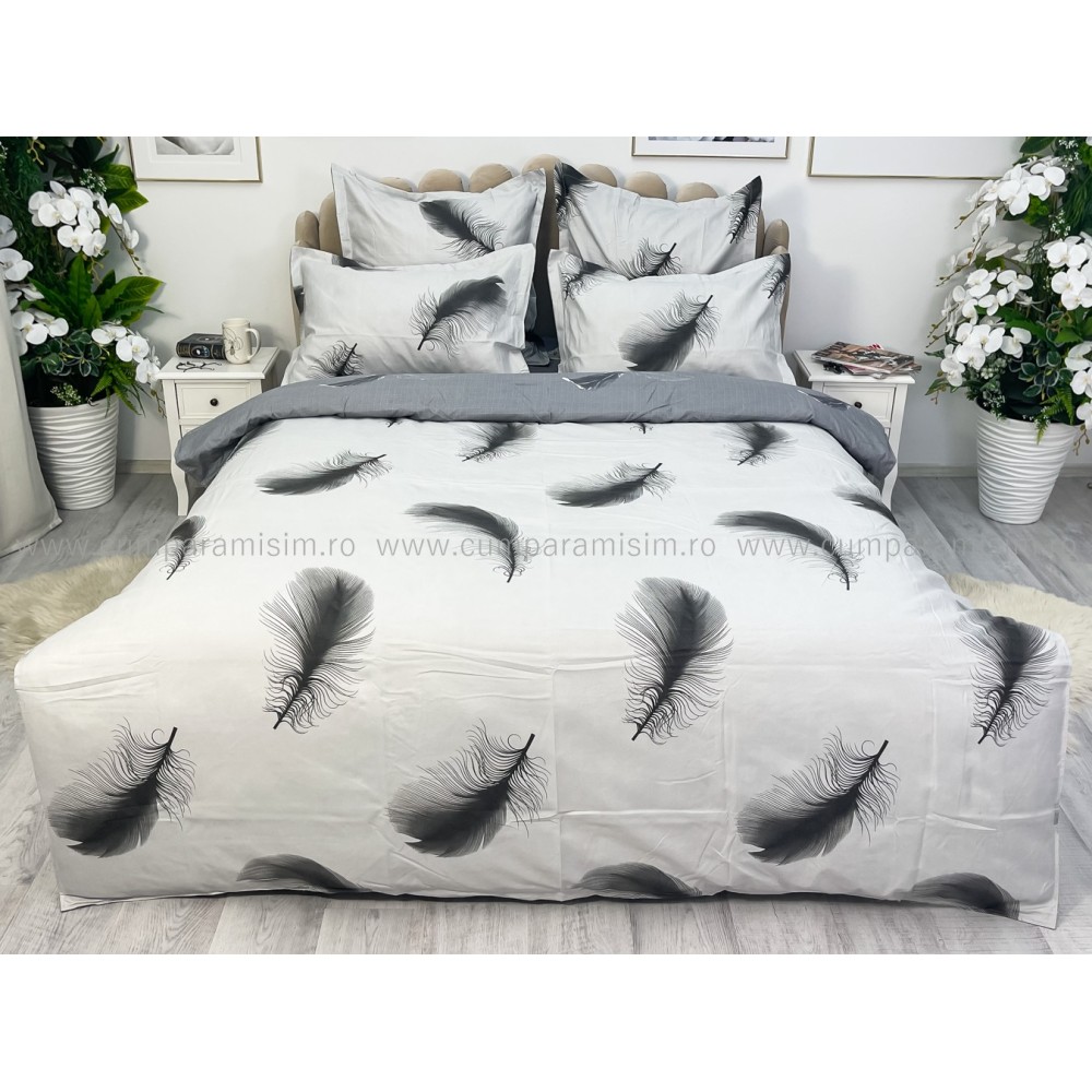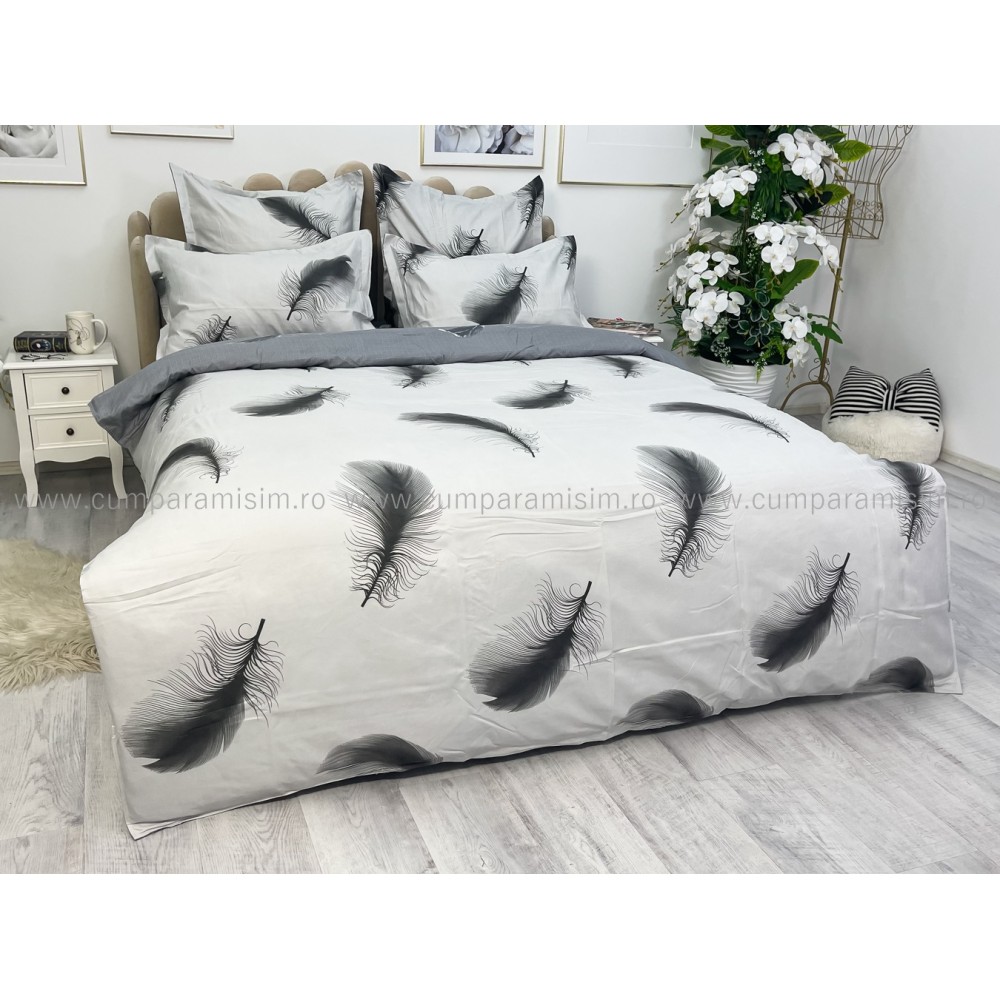 Lenjerie pat dublu (140x200cm, 160x200cm, 180x200cm), FINET, 6 piese, Gri, pene, Johny Home Pucioasa, cod produs: SPR-R60-436