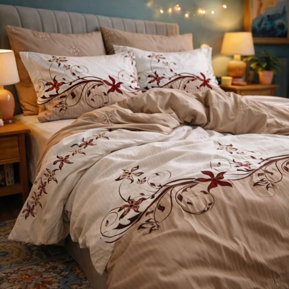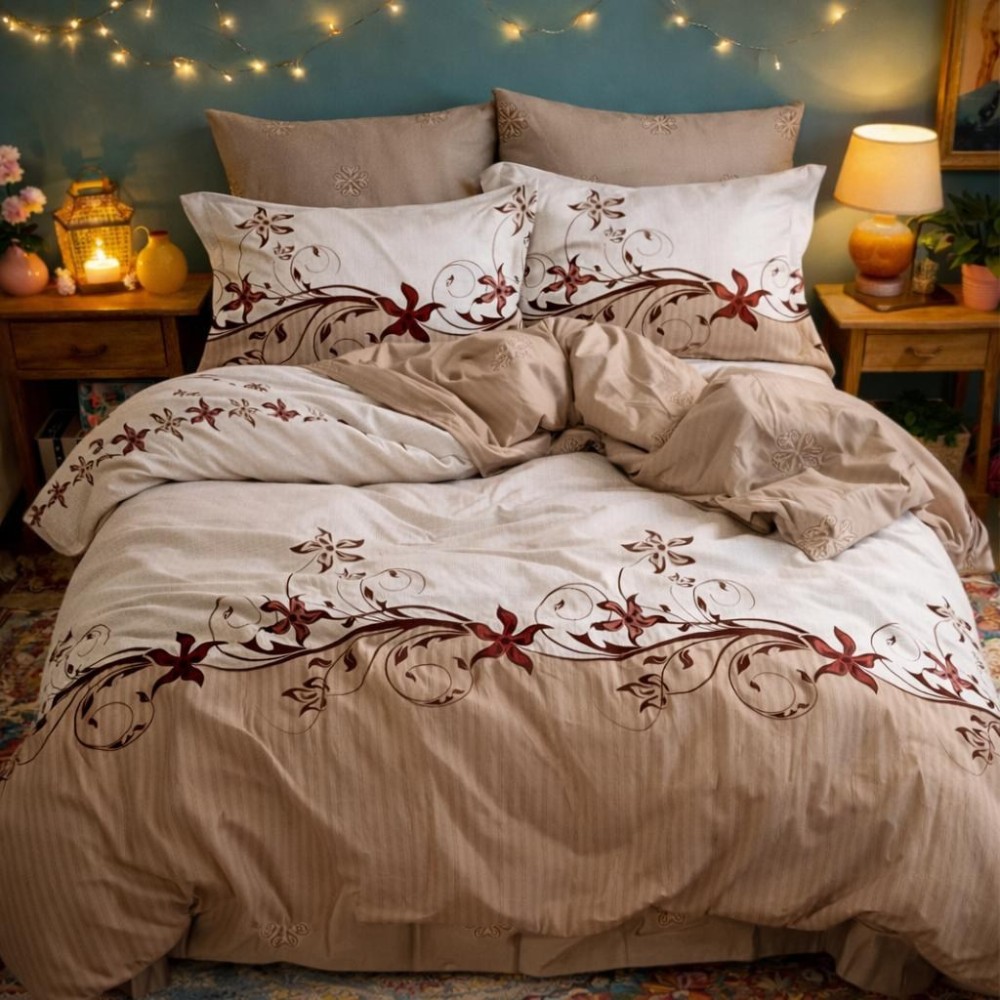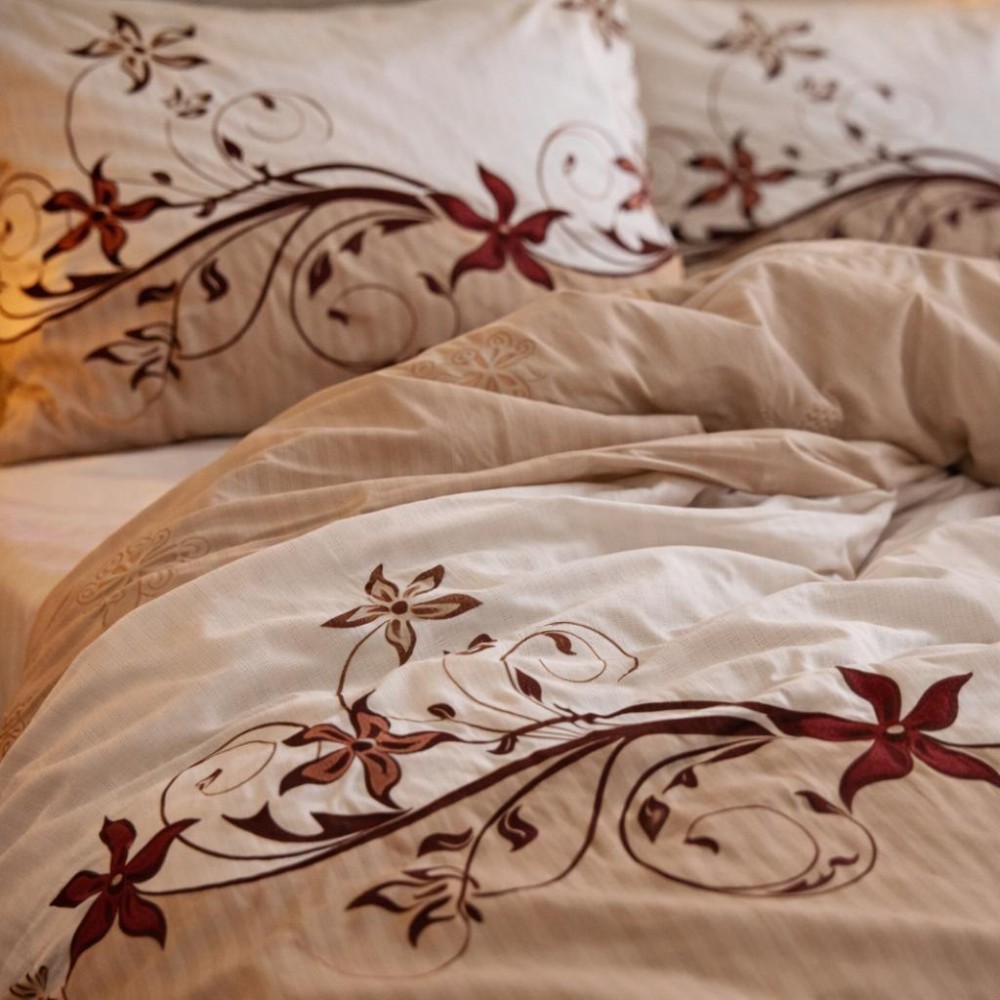 Lenjerie pat dublu, Finet, 6 piese, Bej, floral, Johny Home Pucioasa, cod produs: SPR-R60-453