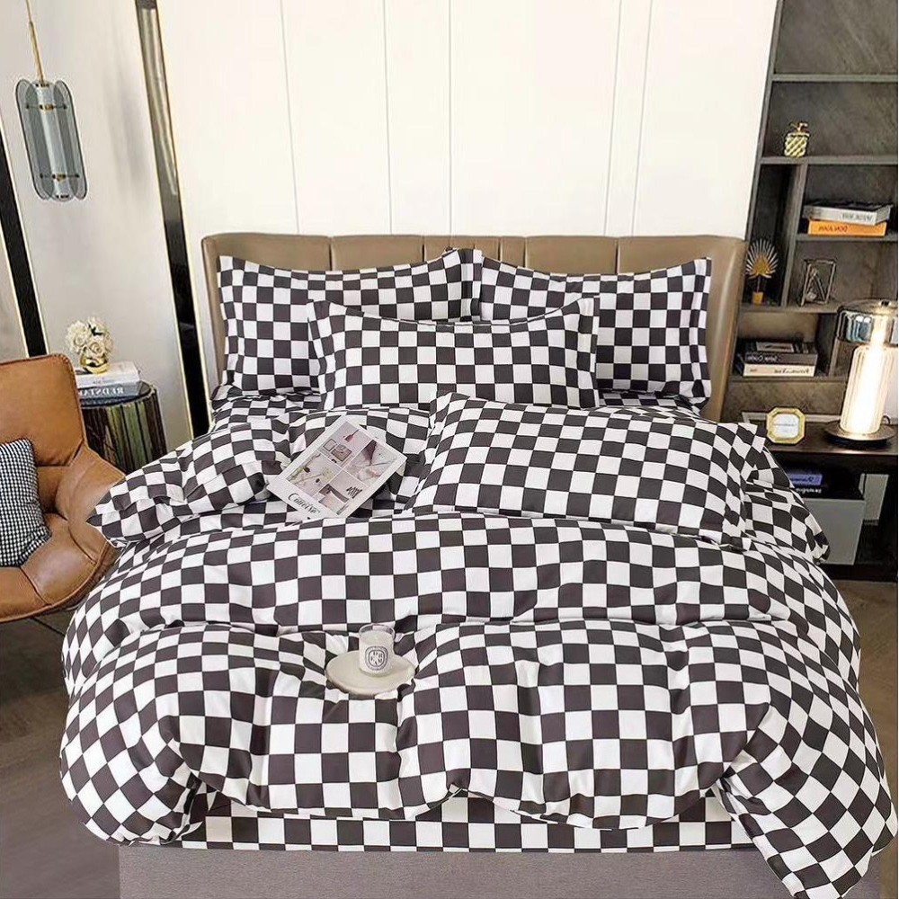 Lenjerie pat dublu (140x200cm, 160x200cm, 180x200cm), FINET, 6 piese, Gri, patratele, Johny Home Pucioasa, cod produs: SPR-R60-510