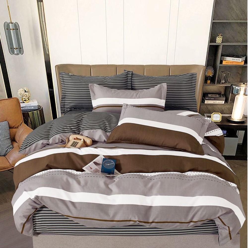Lenjerie pat dublu (140x200cm, 160x200cm, 180x200cm), FINET, 6 piese, Gri, dungi, Johny Home Pucioasa, cod produs: SPR-R60-523