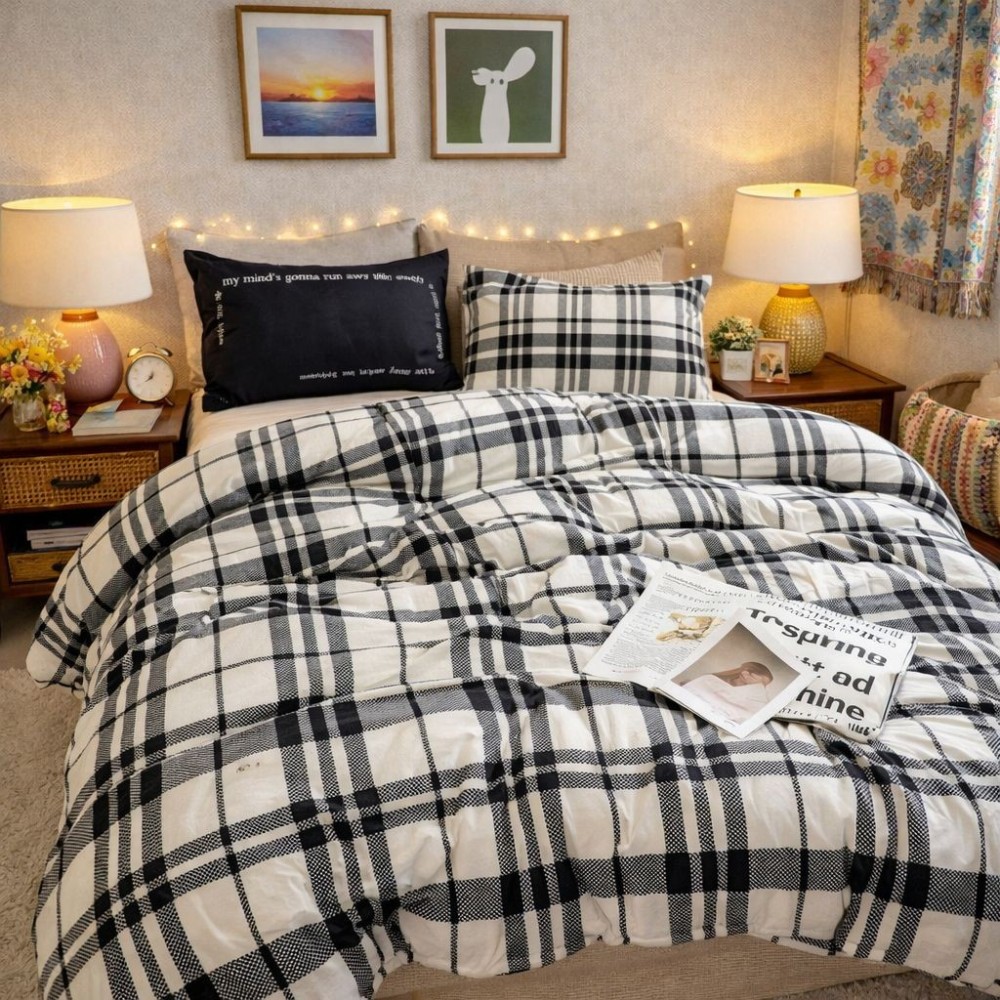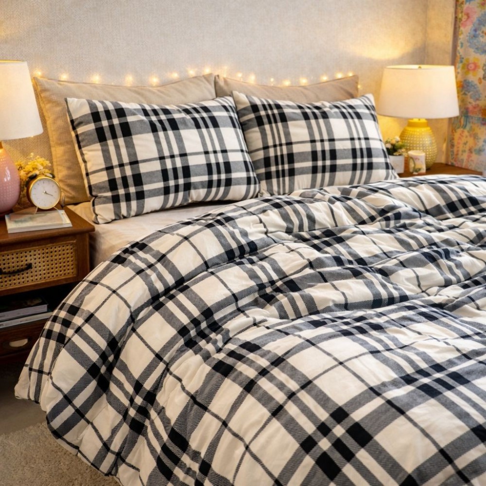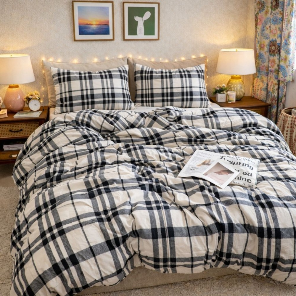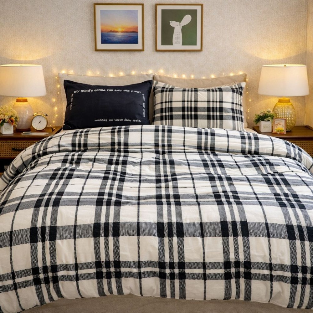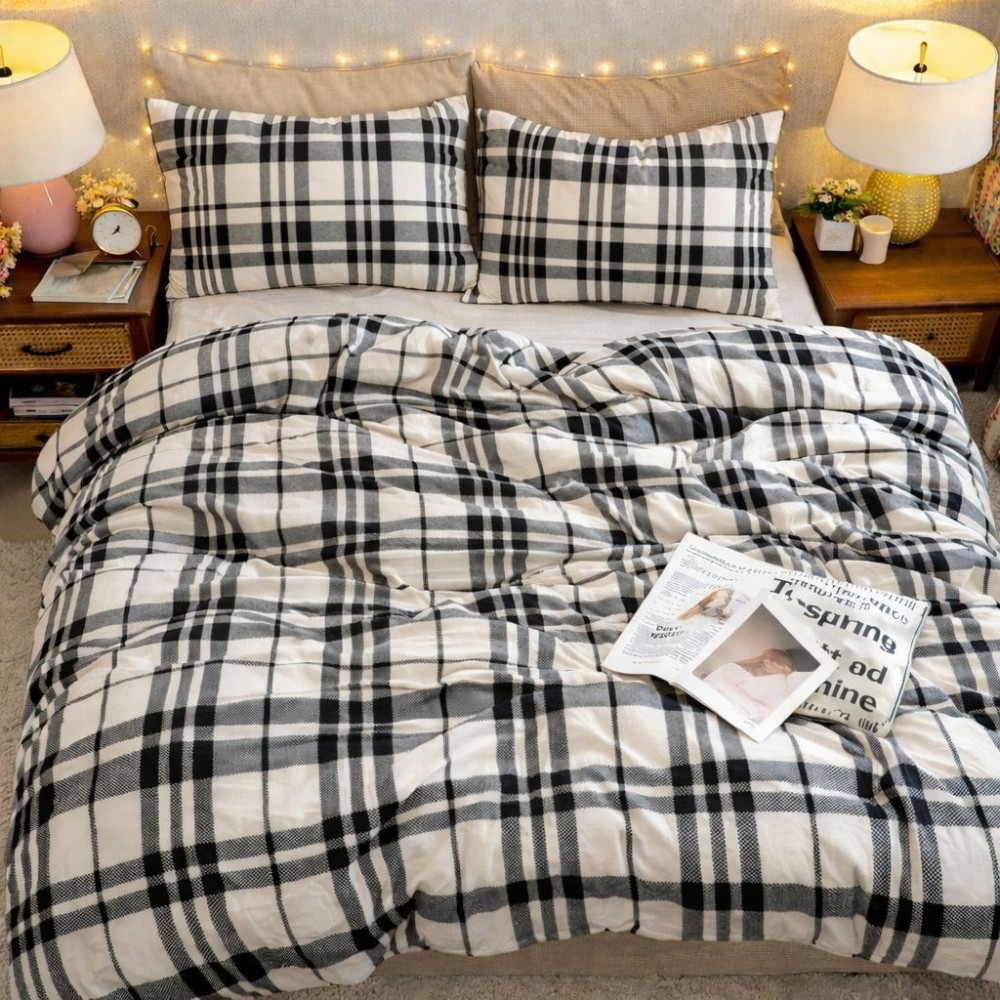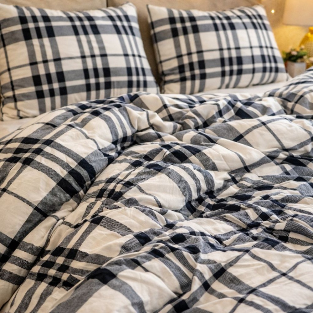 Lenjerie pat dublu, Finet, 6 piese, Gri, carouri, Johny Home Pucioasa, cod produs: SPR-R60-534