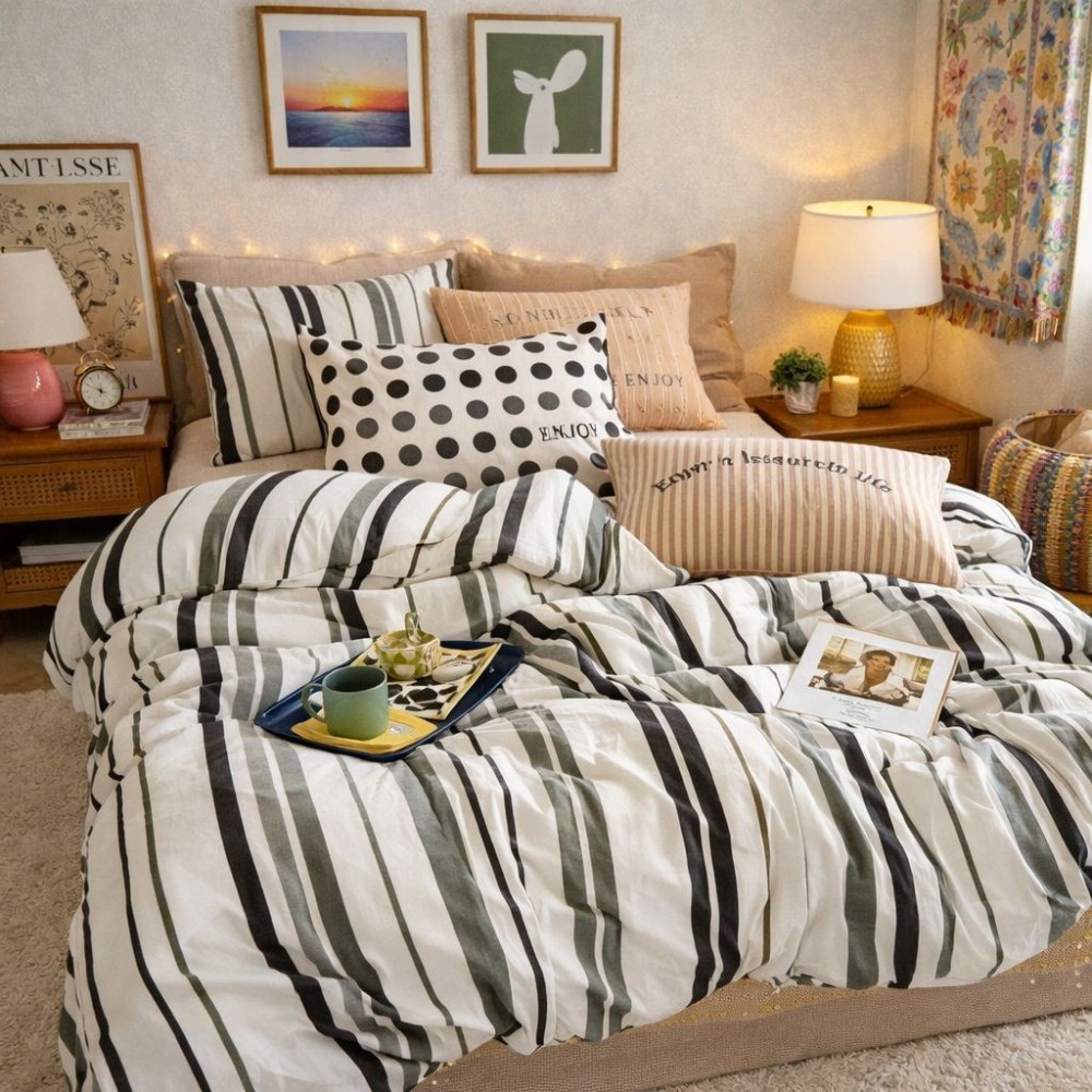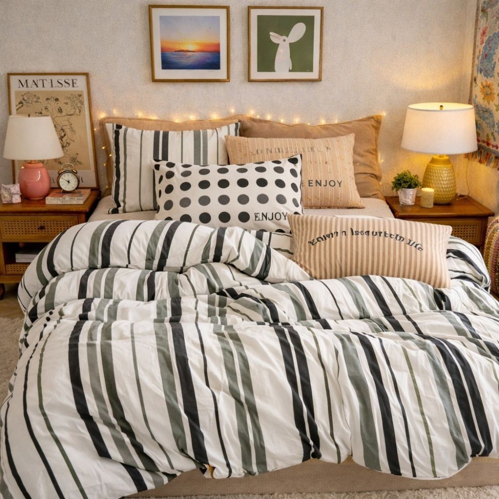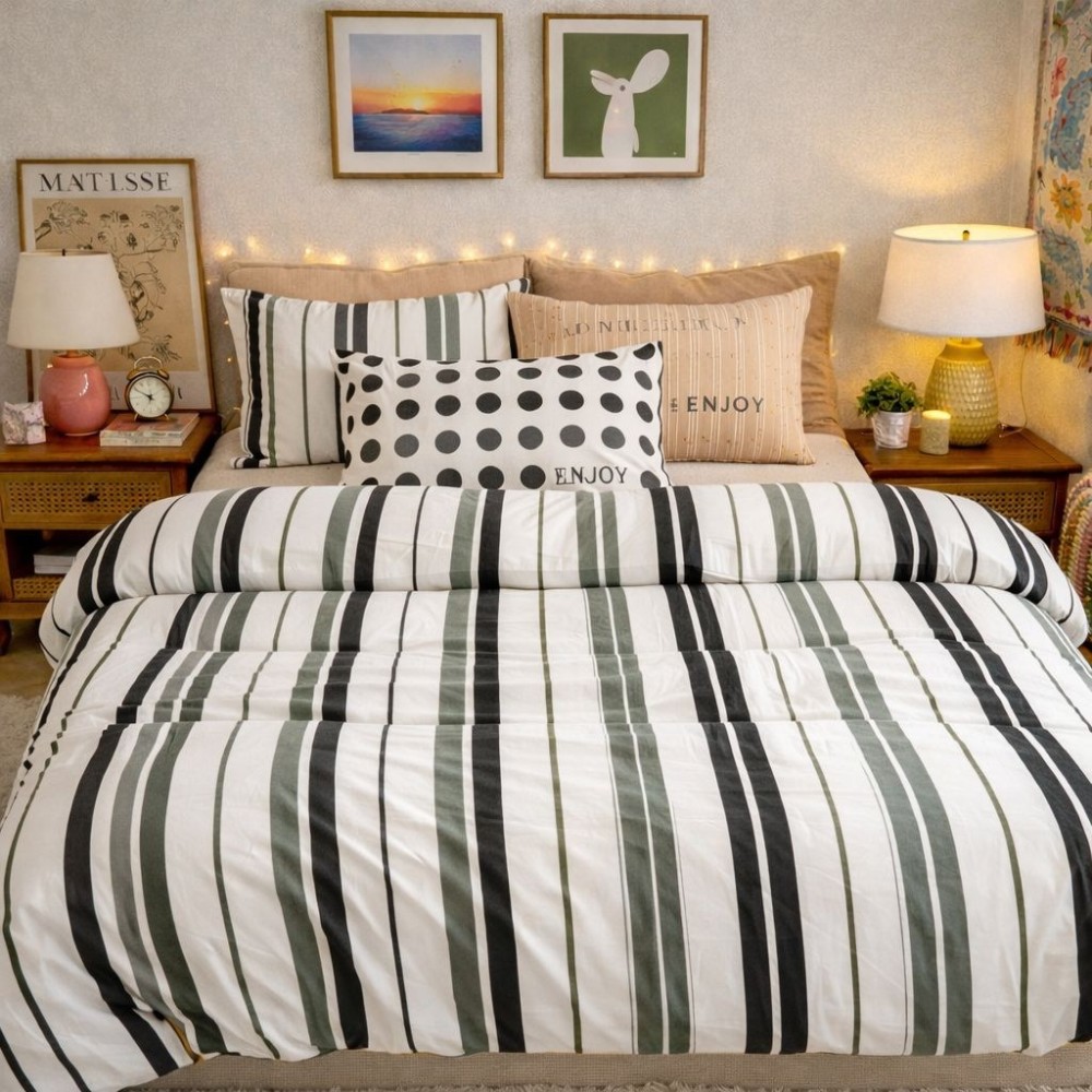 Notă: Imaginile sunt cu titlu de prezentare. Pot exista mici diferențe de nuanță în funcție de setările ecranului. Imprimeul fețelor de pernă poate varia în funcție de croirea materialului.