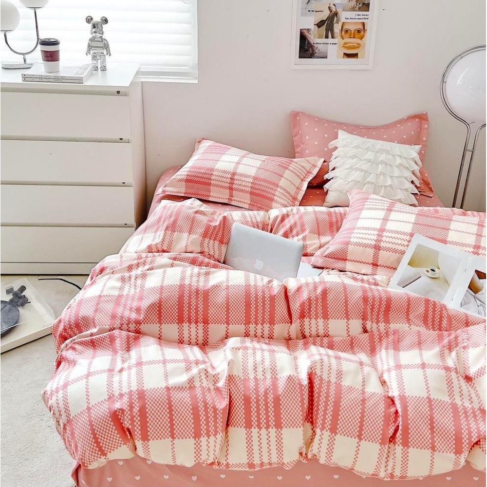 Lenjerie pat dublu (140x200cm, 160x200cm, 180x200cm), FINET, 6 piese, Roz, carouri, Johny Home Pucioasa, cod produs: SPR-R60-548