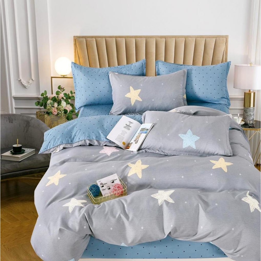 Lenjerie pat dublu (140x200cm, 160x200cm, 180x200cm), FINET, 6 piese, Gri, stelute, Johny Home Pucioasa, cod produs: SPR-R60-549