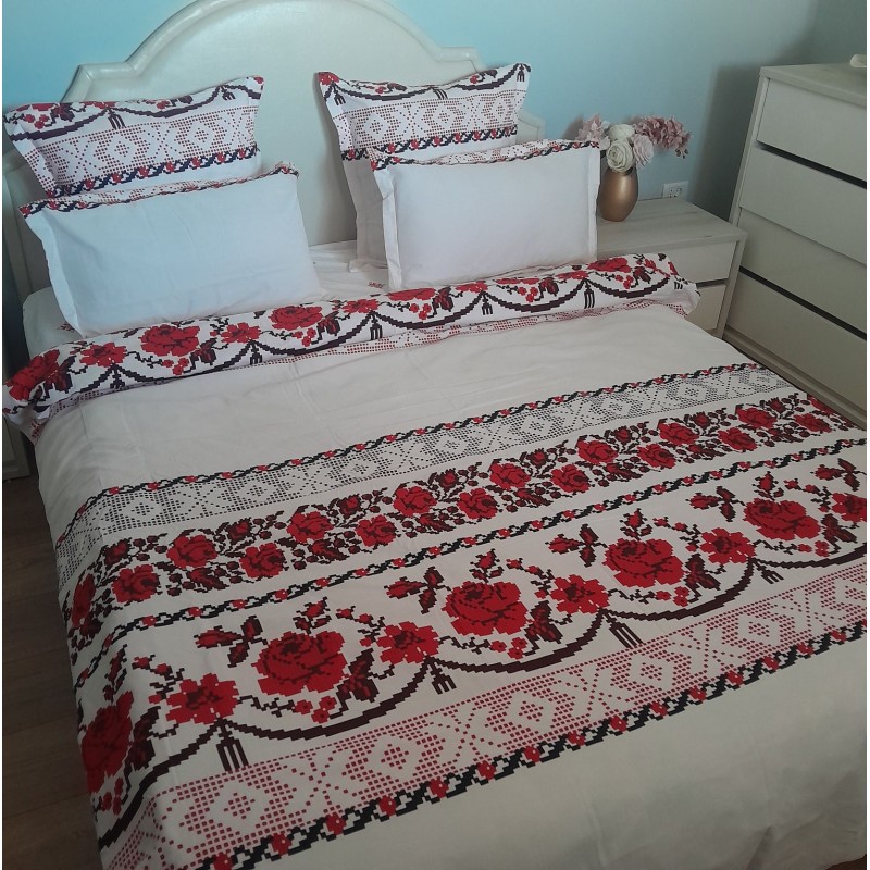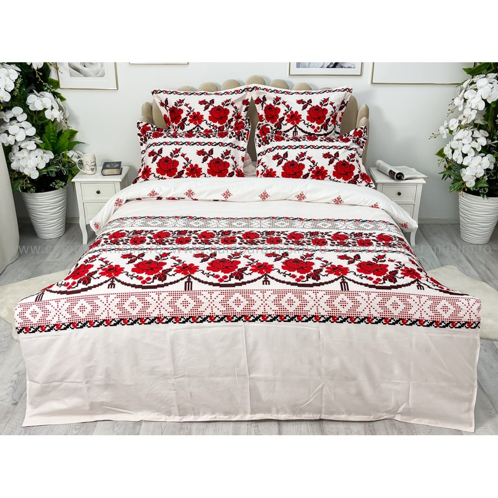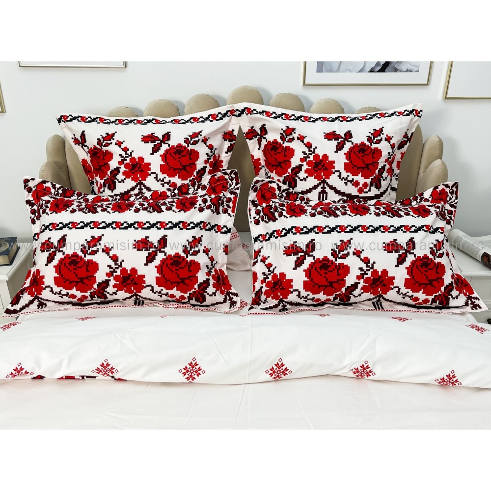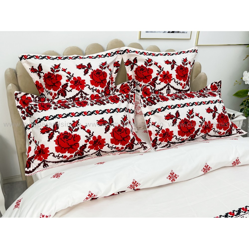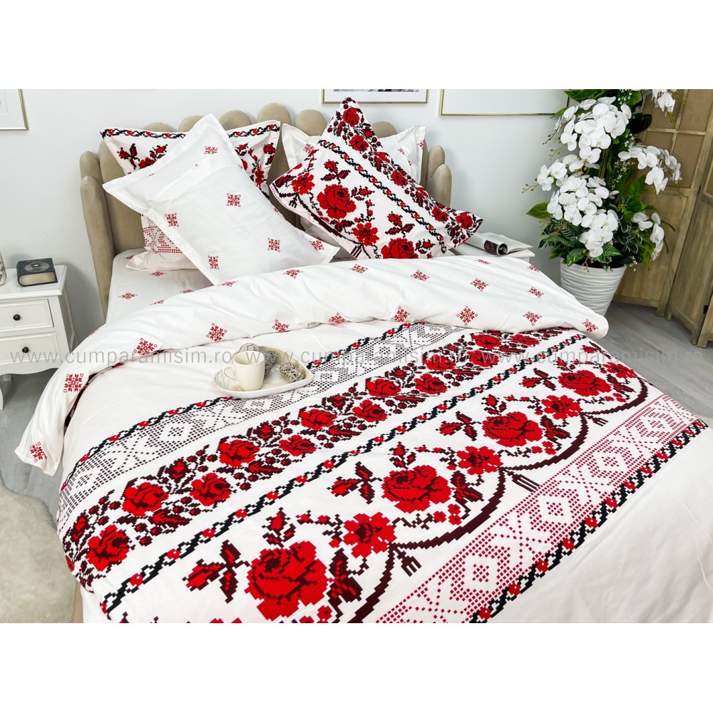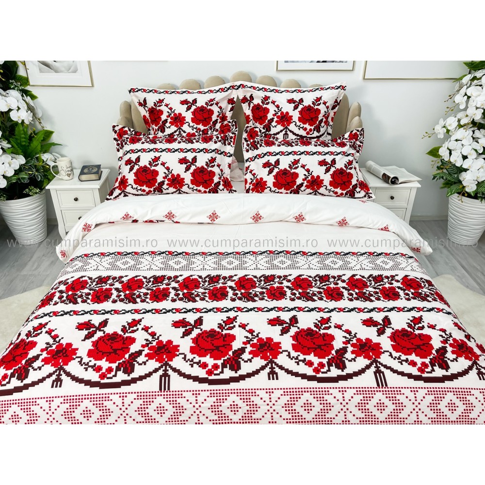 Lenjerie pat dublu (140x200cm, 160x200cm, 180x200cm),  FINET, 6 piese, Alb-Rosu, model traditional [1]