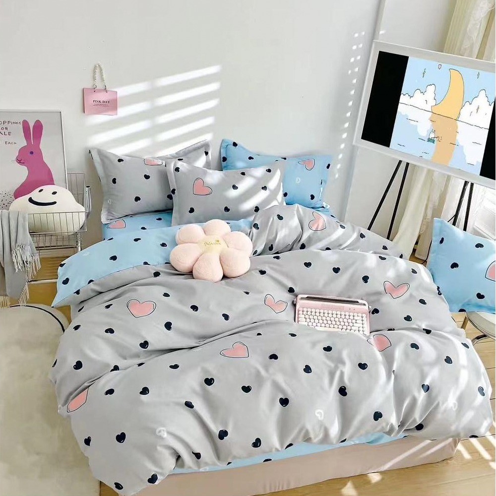 Lenjerie pat dublu (160x200cm, 180x200cm), FINET, 6 piese, cu ELASTIC, Gri, inimioare, Johny Home Pucioasa, cod produs: SPR-T-241