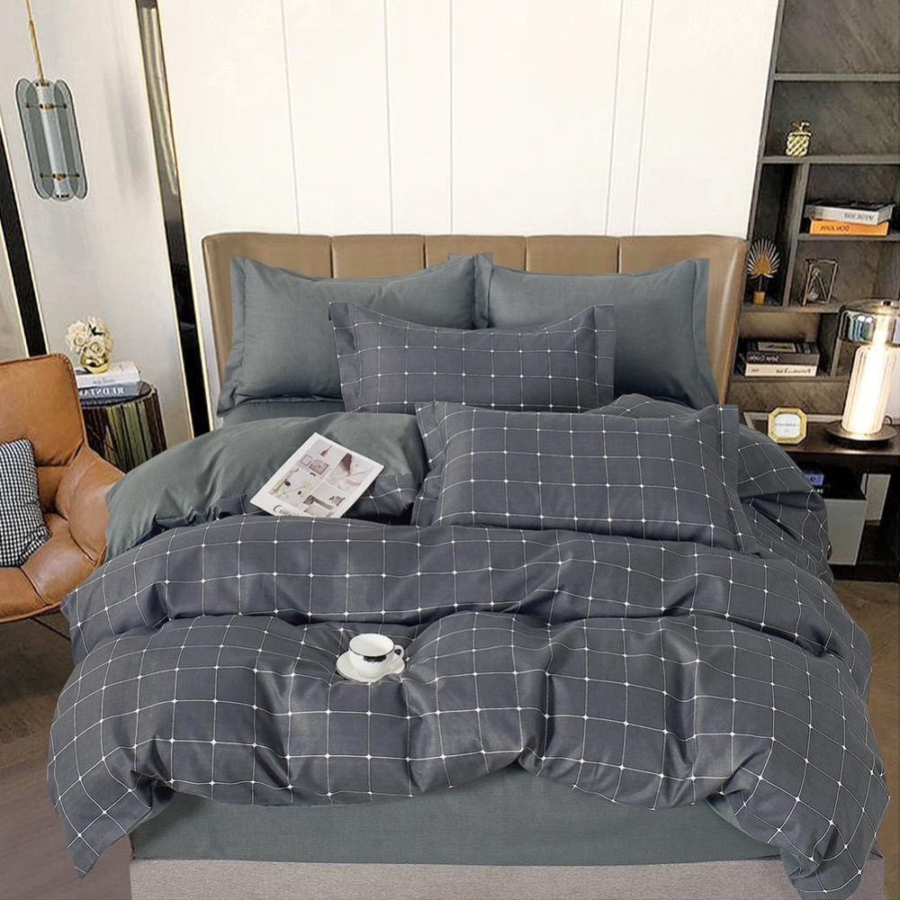 Lenjerie pat dublu (160x200cm, 180x200cm), FINET, 6 piese, cu ELASTIC, Gri, patratele, Johny Home Pucioasa, cod produs: SPR-T-260