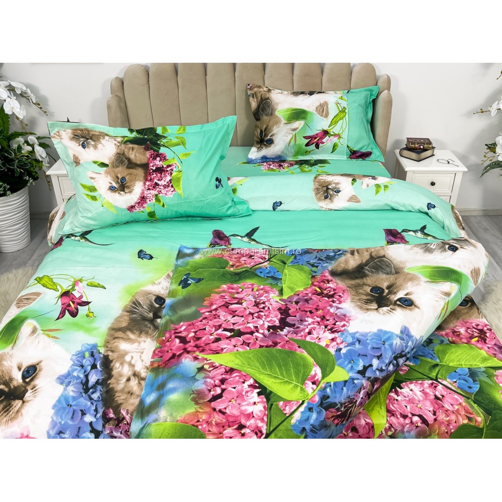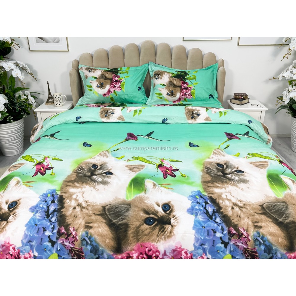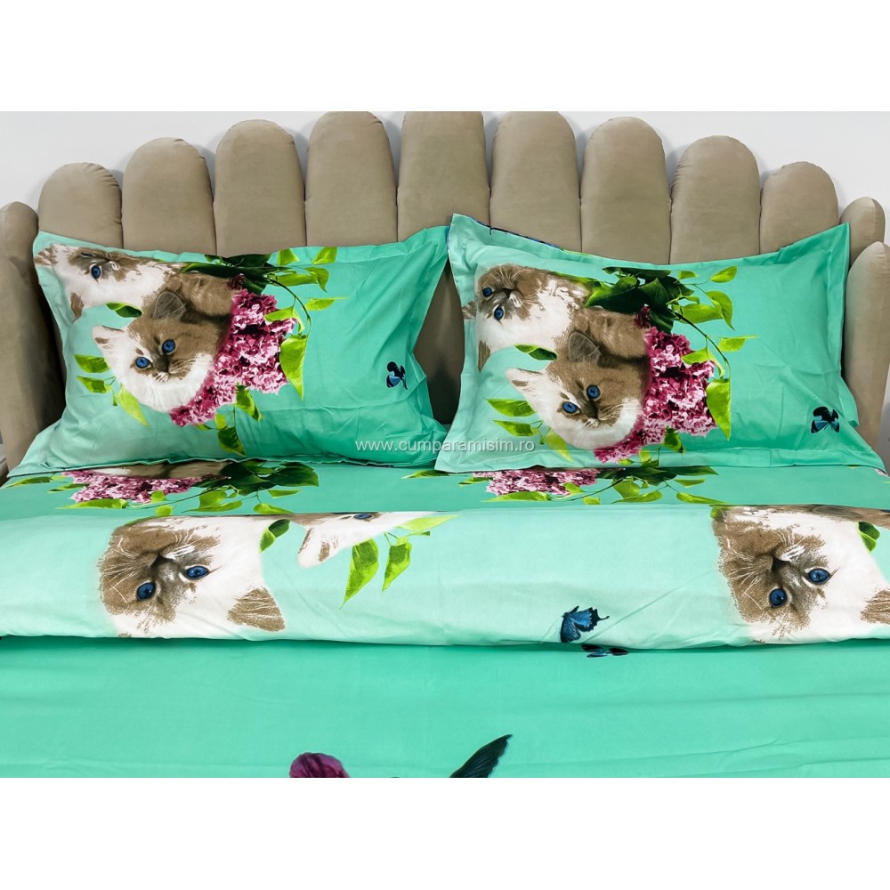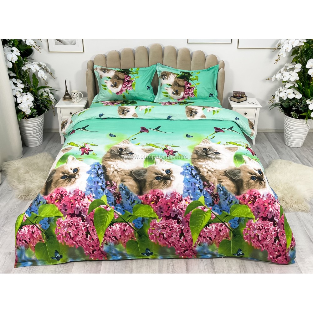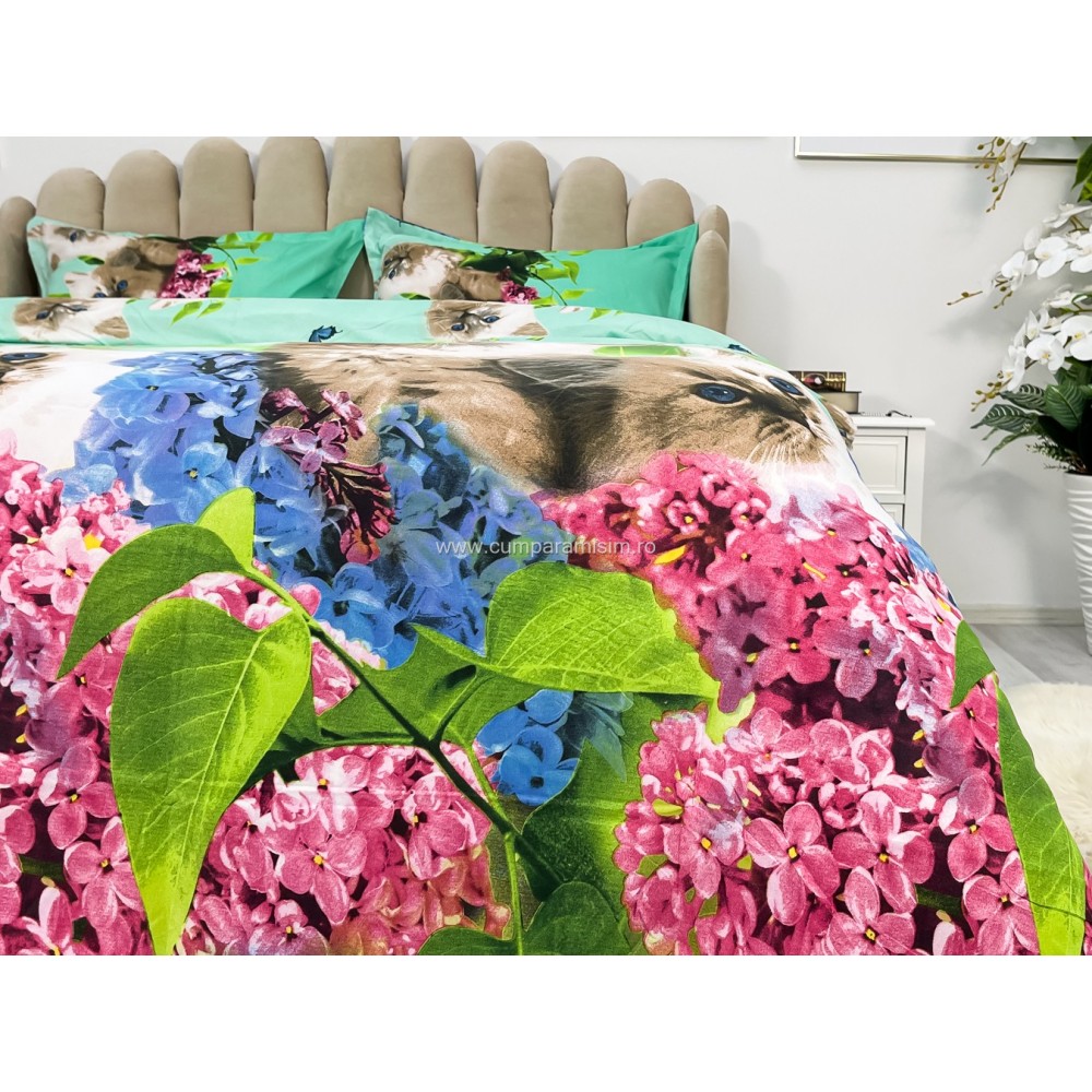 Lenjerie 3D pentru pat de 2 persoane, confectionata din microfibra, cu tesatura deasa, fina, placuta la atingere. Acest tip de imprimeu, este realizat cu o inovativa metoda de printare, astfel incat ofera senzatia ca imprimeul este in relief, datorita nuantelor folosite si combinate perfect, pentru ca dumneavoastra sa va puteti bucura de un asternut iesit din comun.