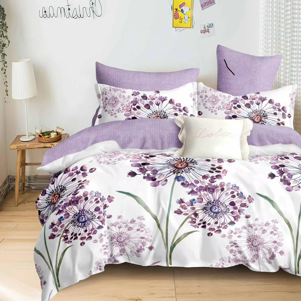 Lenjerie pat dublu (140x200cm, 160x200cm, 180x200cm), FINET, 6 piese, Alb, Mov, flori, East Romania, cod produs: EST-FN-336