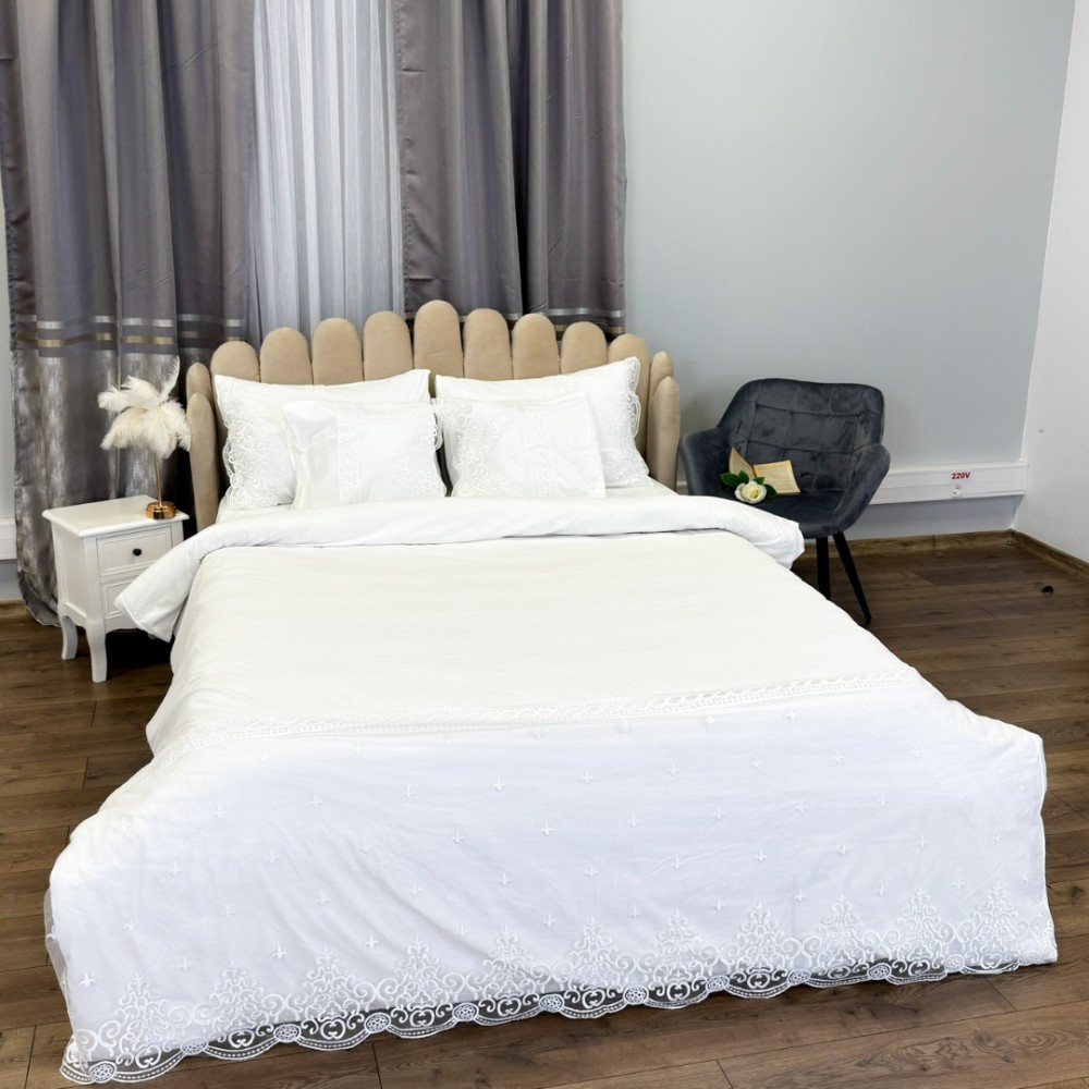 - Design Elegant cu Dantelă și Broderie – Adaugă un plus de rafinament dormitorului și se integrează perfect în orice stil de decor, de la clasic la modern.