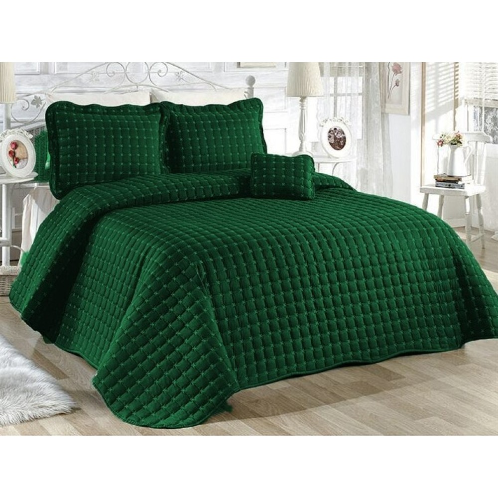 Cuvertura Brodata pat dublu cu 3 fete de perna, verde smarald , Casa Sabry, cod produs: SBR-CVM-04