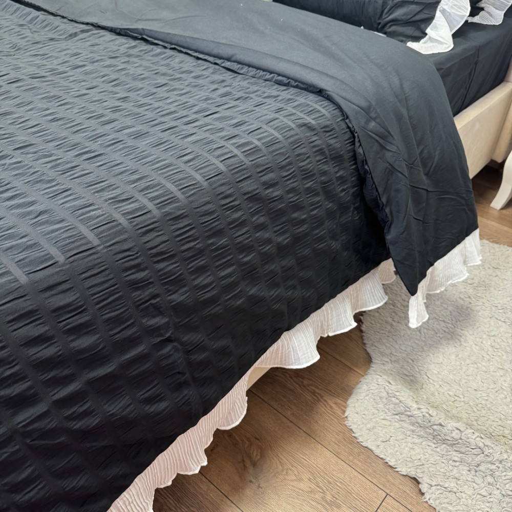 - Aspect Elegant: Designul creponat deluxe adaugă un aspect rafinat și elegant lenjeriei, transformând aspectul întregului dormitor. Aceste lenjerii pot îmbunătăți instantaneu atmosfera camerei tale.