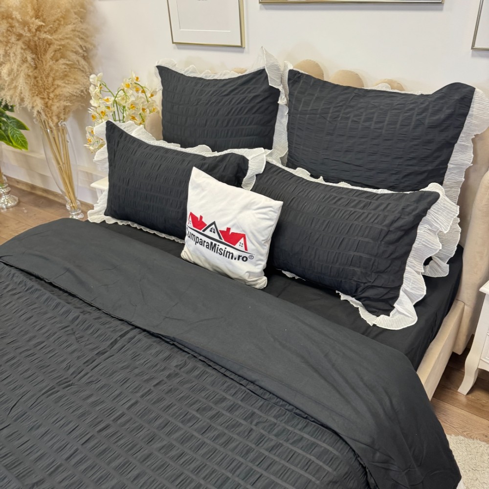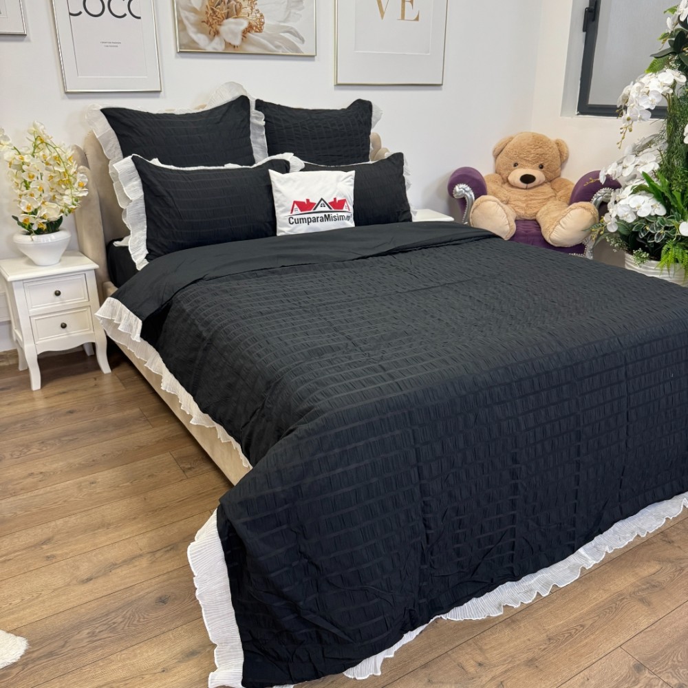 Experimentează confortul într-o nouă dimensiune, datorită bumbacului fin și calității creponate deluxe, care nu doar îmbunătățesc calitatea somnului tău, dar adaugă și o notă de eleganță în orice încăpere. Indiferent dacă dorești să revigorezi aspectul camerei tale sau pur și simplu să te înfășori în lux în timpul odihnei, această lenjerie de pat este alegerea perfectă.