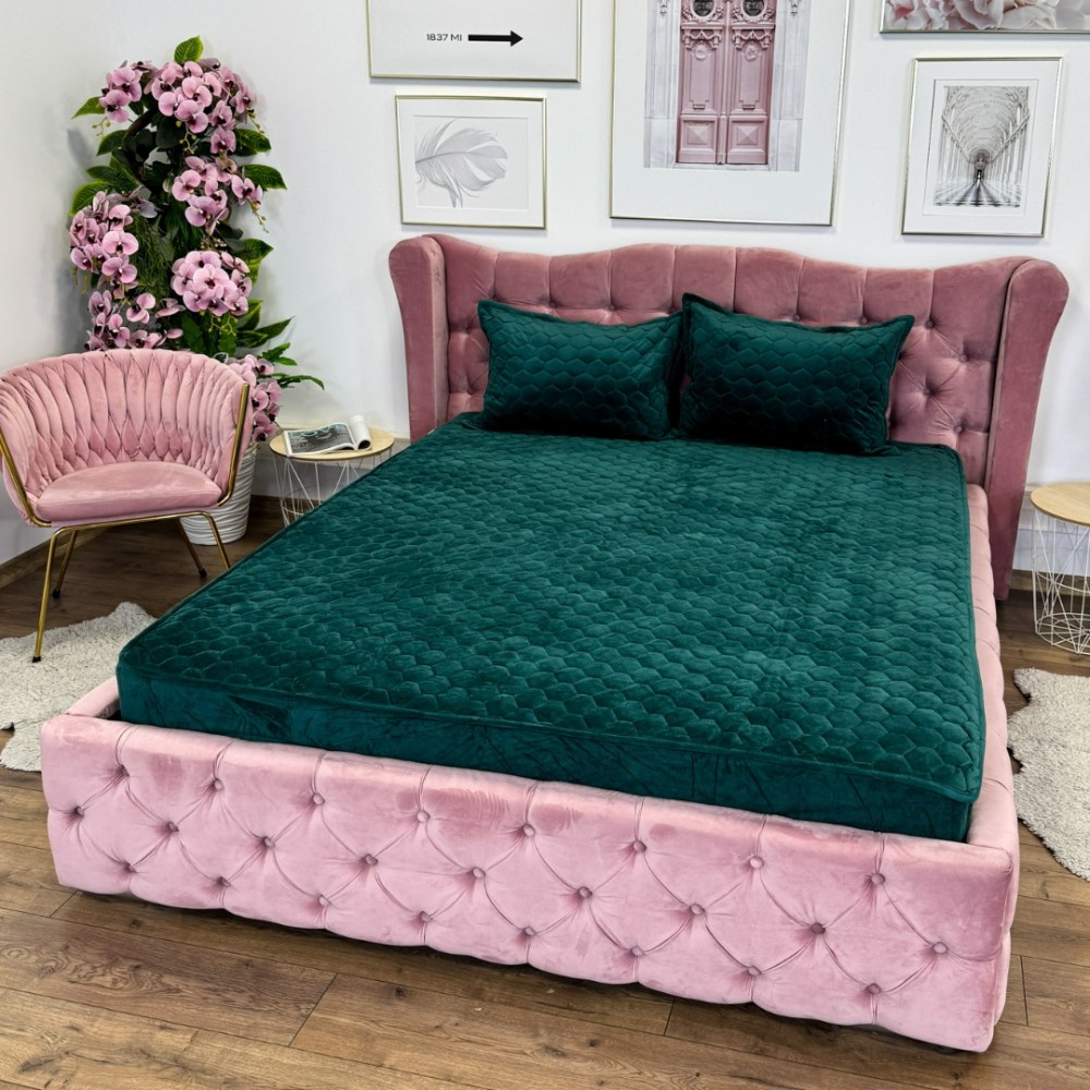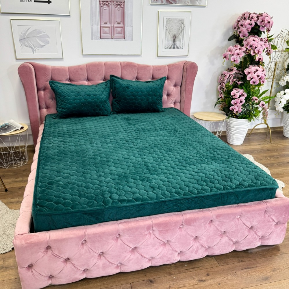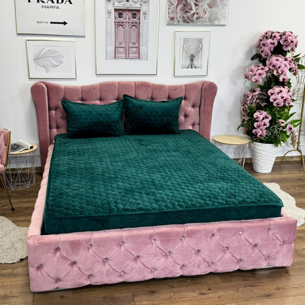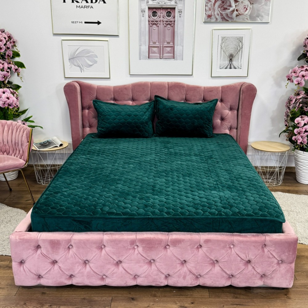 Husã matlasatã tip topper din catifea, 160x200cm + 2 fete de perna 50x70cm, verde, Alti producatori, cod produs: YAT119