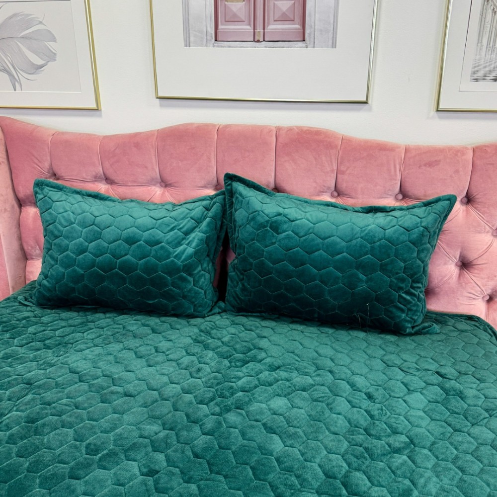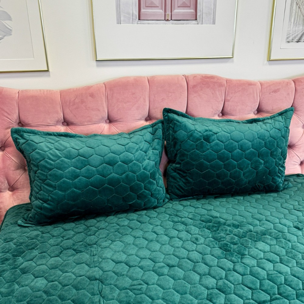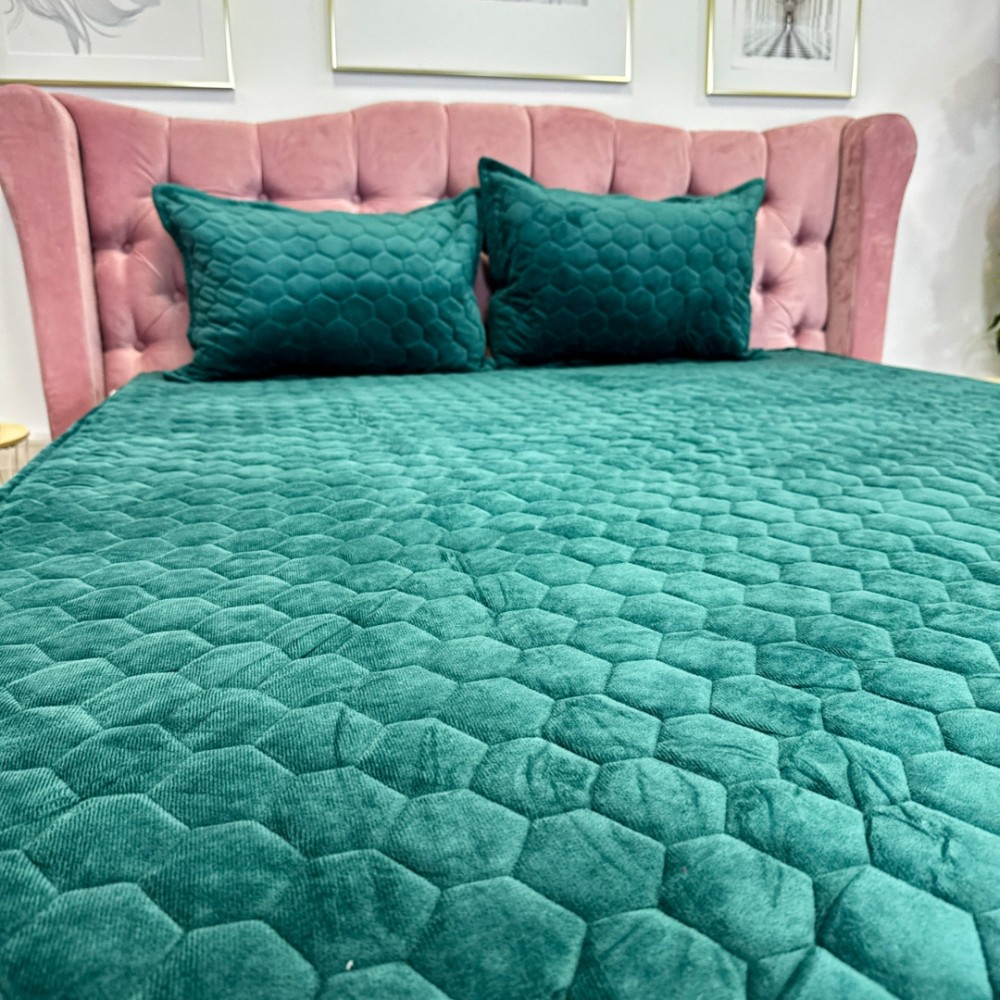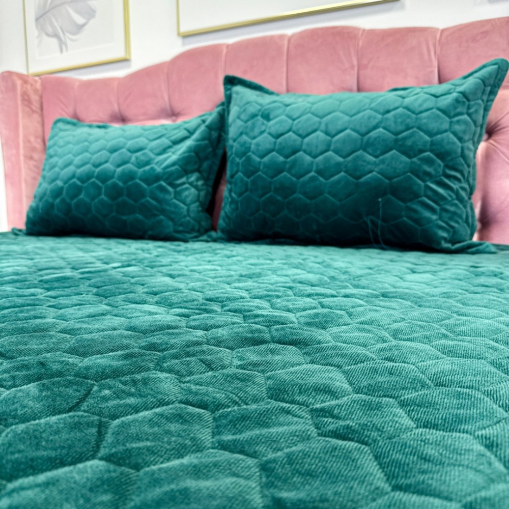 Husã matlasatã tip topper din catifea, 160x200cm + 2 fete de perna 50x70cm, verde, Alti producatori, cod produs: YAT119