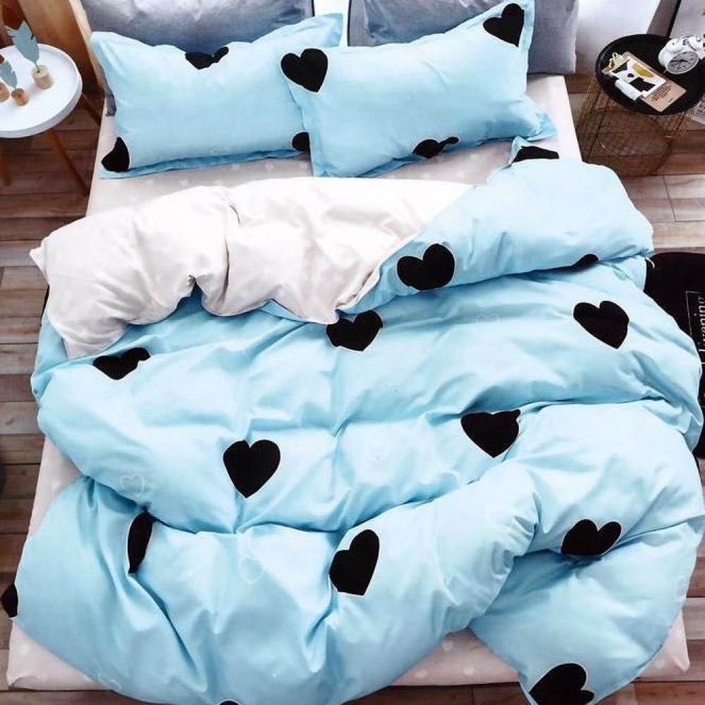 Lenjerie pat dublu (140x200cm, 160x200cm, 180x200cm), Finet Soft, cearsaf clasic, 4 piese, Bleu, inimioare, Home Pucioasa, cod produs: YY-FSN-08