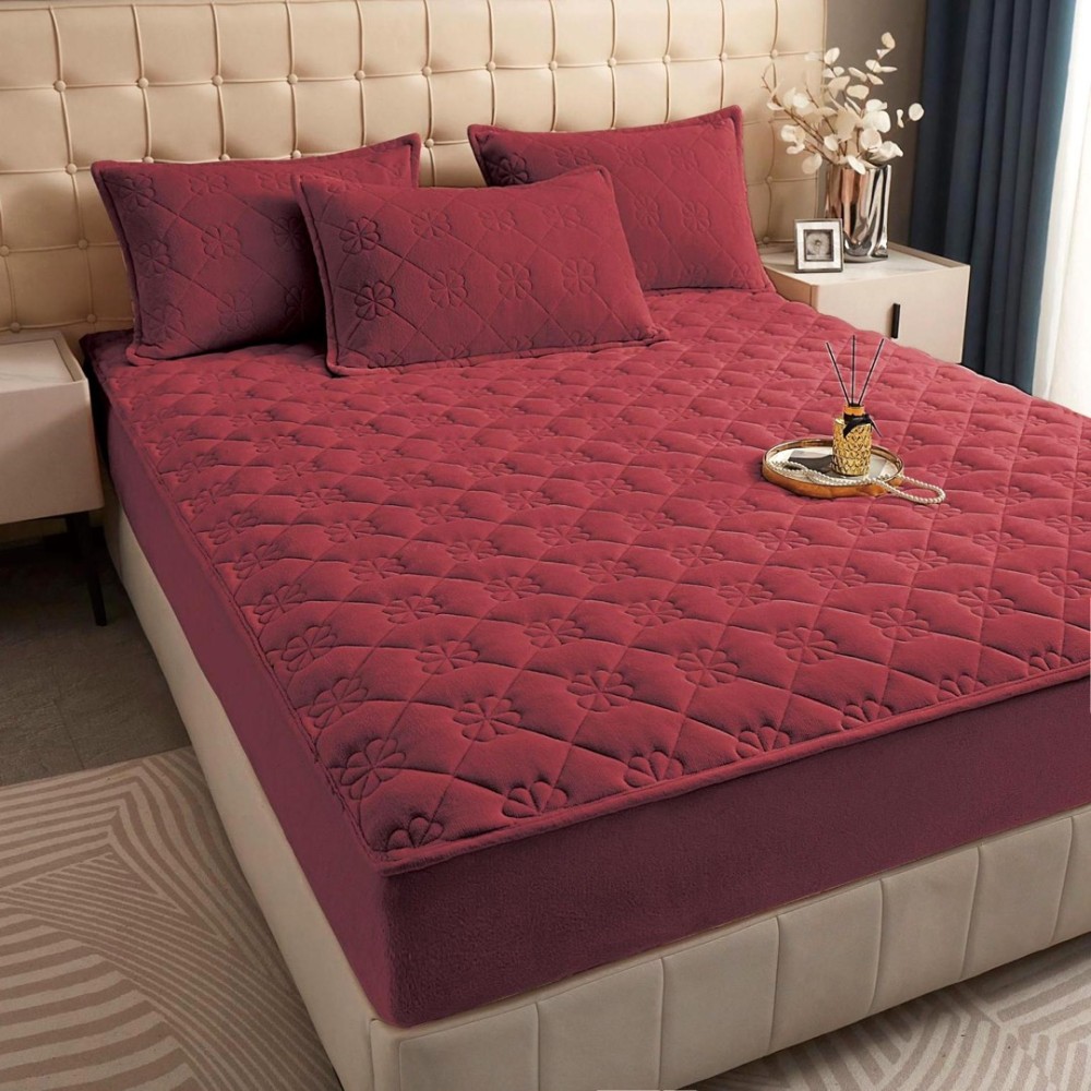 Husã matlasatã tip topper din catifea, 160x200cm + 2 fete de perna 50x70cm, grena, Alti producatori, cod produs: YAT155