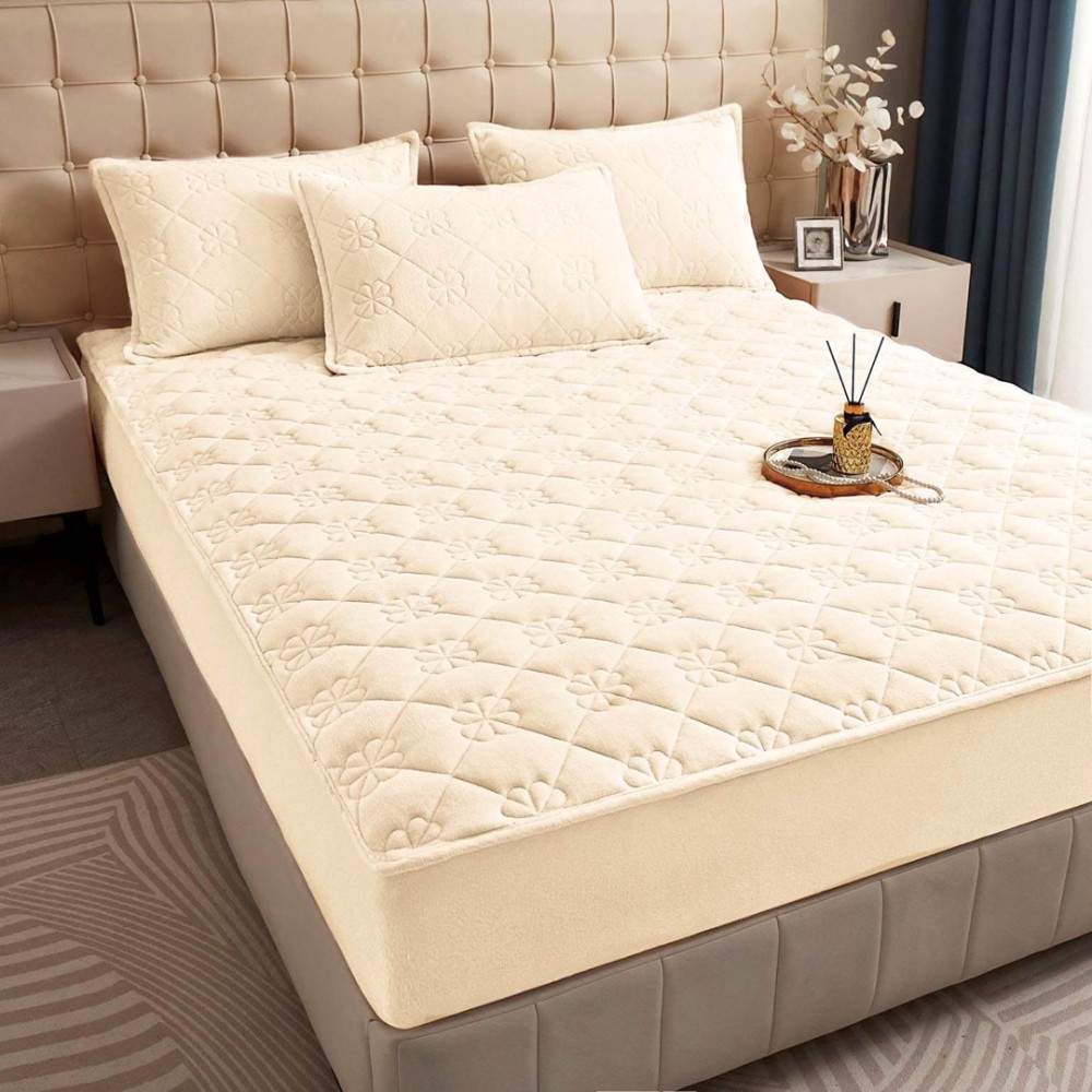 Husã matlasatã tip topper din catifea, 160x200cm + 2 fete de perna 50x70cm, crem, Alti producatori, cod produs: YAT157