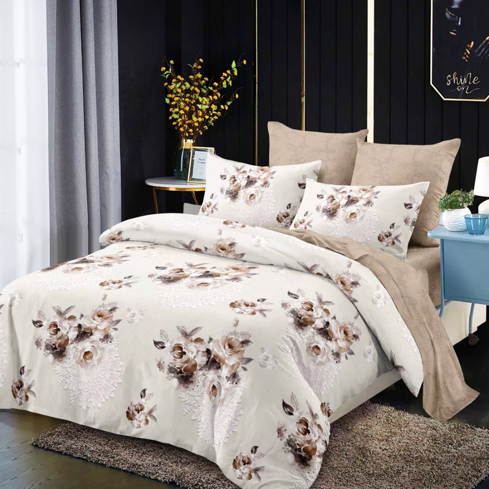 Lenjerie Pat Dublu, FINET, 6 piese, Gri, Bej, Flori, Super Design Pucioasa, cod produs: SDP-FNC-829