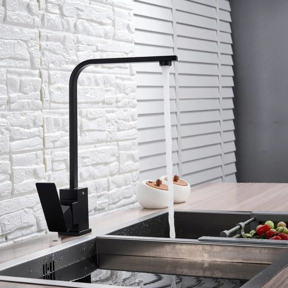 Baterie Bucătărie Minimalistă – Negru Mat, Cadru Pătrat, Monocomandă VST59, cod produs: SNL-72