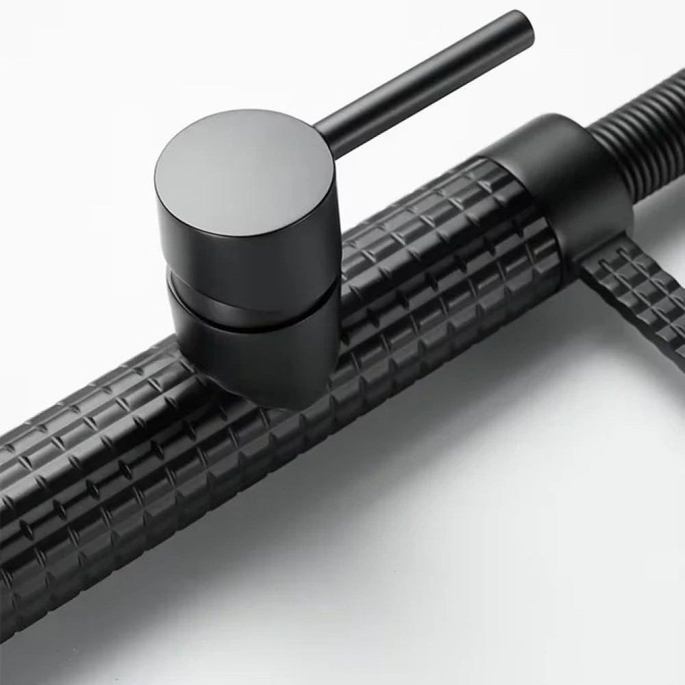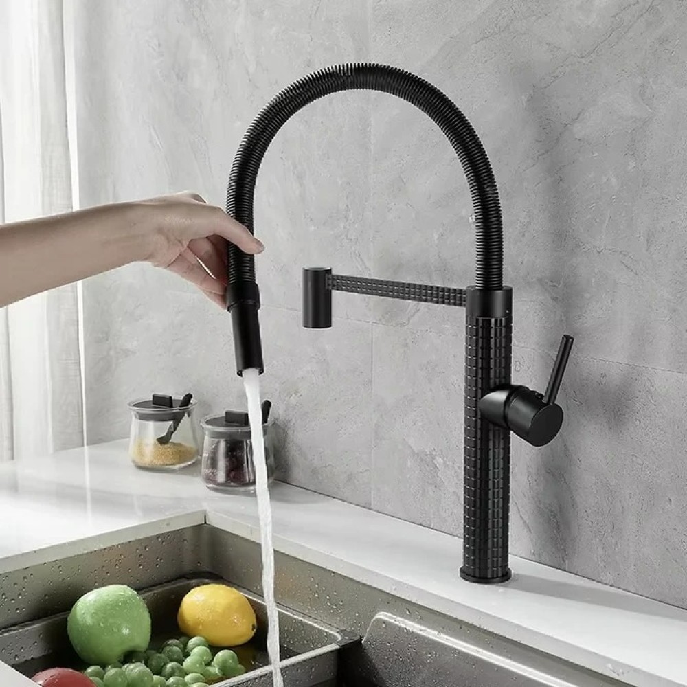 Această baterie de bucătărie negru mat cu design telescopic și cap rotativ este soluția perfectă pentru eficiență și stil în spațiul tău de gătit. Realizată din materiale durabile, asigură o utilizare îndelungată și un aspect modern, potrivit pentru orice tip de bucătărie.
