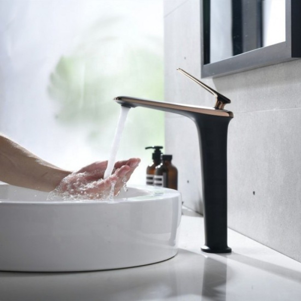 Baterie lavoar montare pe blat sau lavoar, negru - gold rose