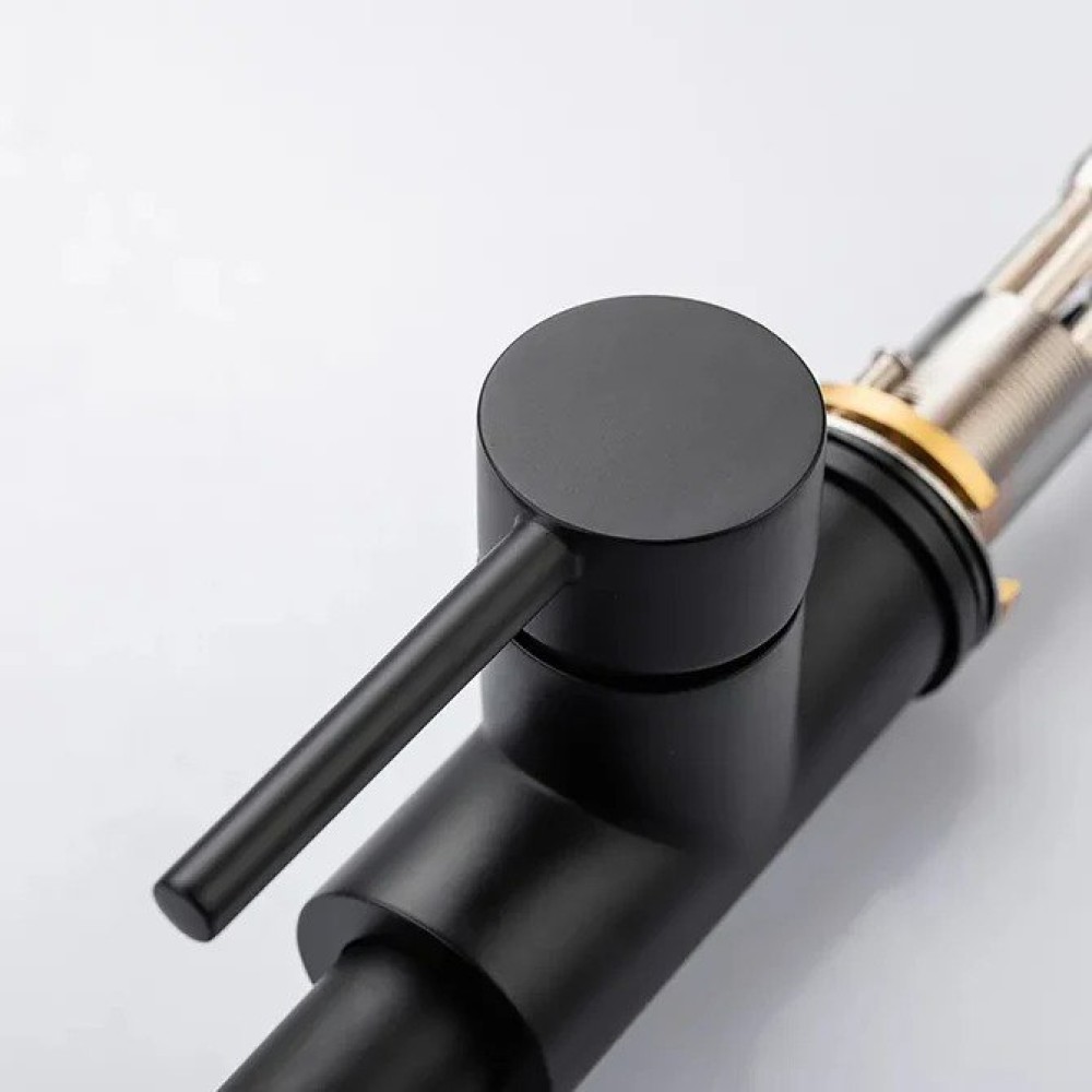 O soluție modernă și funcțională pentru baia ta – această baterie de lavoar cu finisaj negru mat impresionează prin designul simplist și versatil. Dotată cu pipă ajustabilă și detașabilă, îți oferă libertate de mișcare și un plus de confort în utilizare zilnică. Finisajul mat este elegant, ușor de întreținut și rezistent la pete. Ideală pentru băi contemporane care pun accent pe eleganță și utilitate.