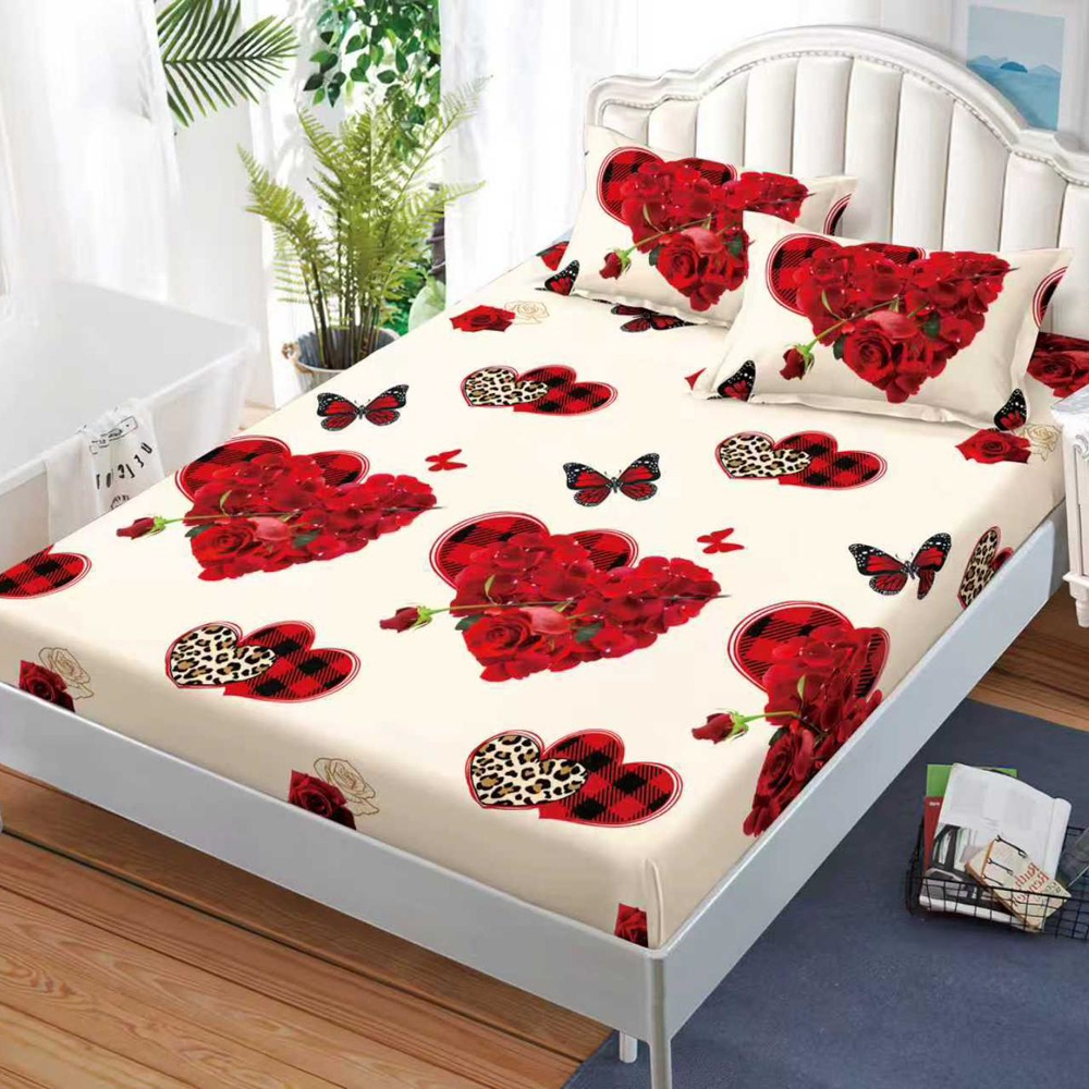 Cearșaf cu Elastic, Bumbac Satinat, 160x200 cm + 2 Fețe de Pernă 50x70 cm, Alb, inimi trandafiri, Johny Home Pucioasa, cod produs: SPR-JE-44