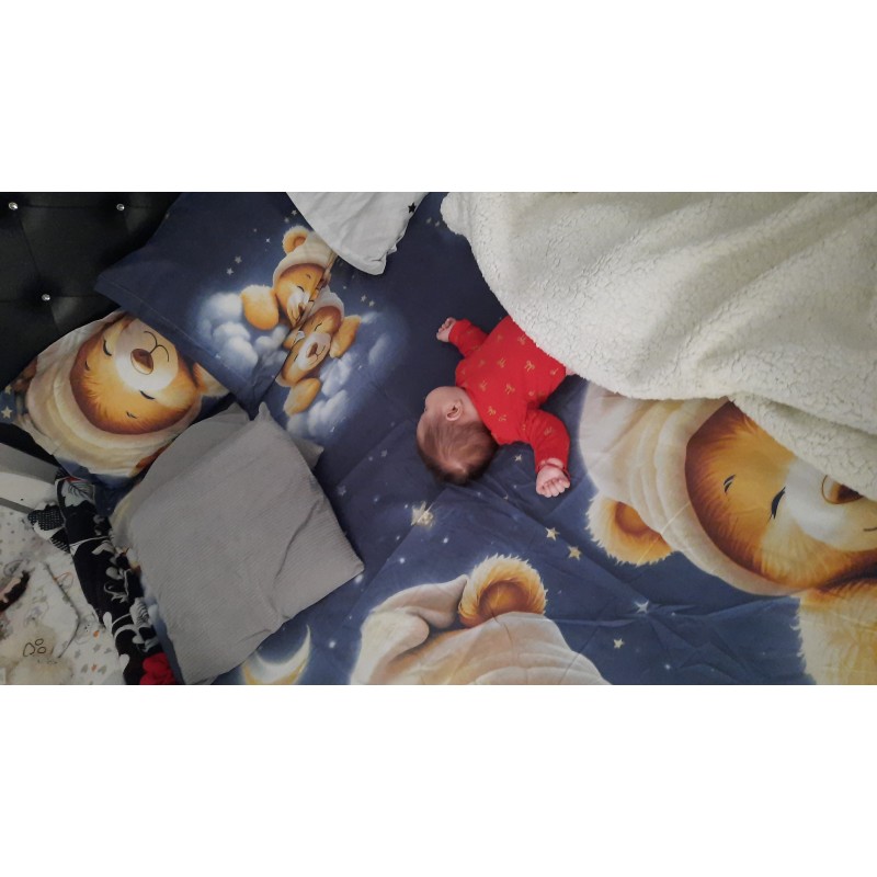 Cearșaf cu Elastic, 180x200 cm + 2 Fețe de Pernă 50x70 cm, Albastru, ursuleti [1]