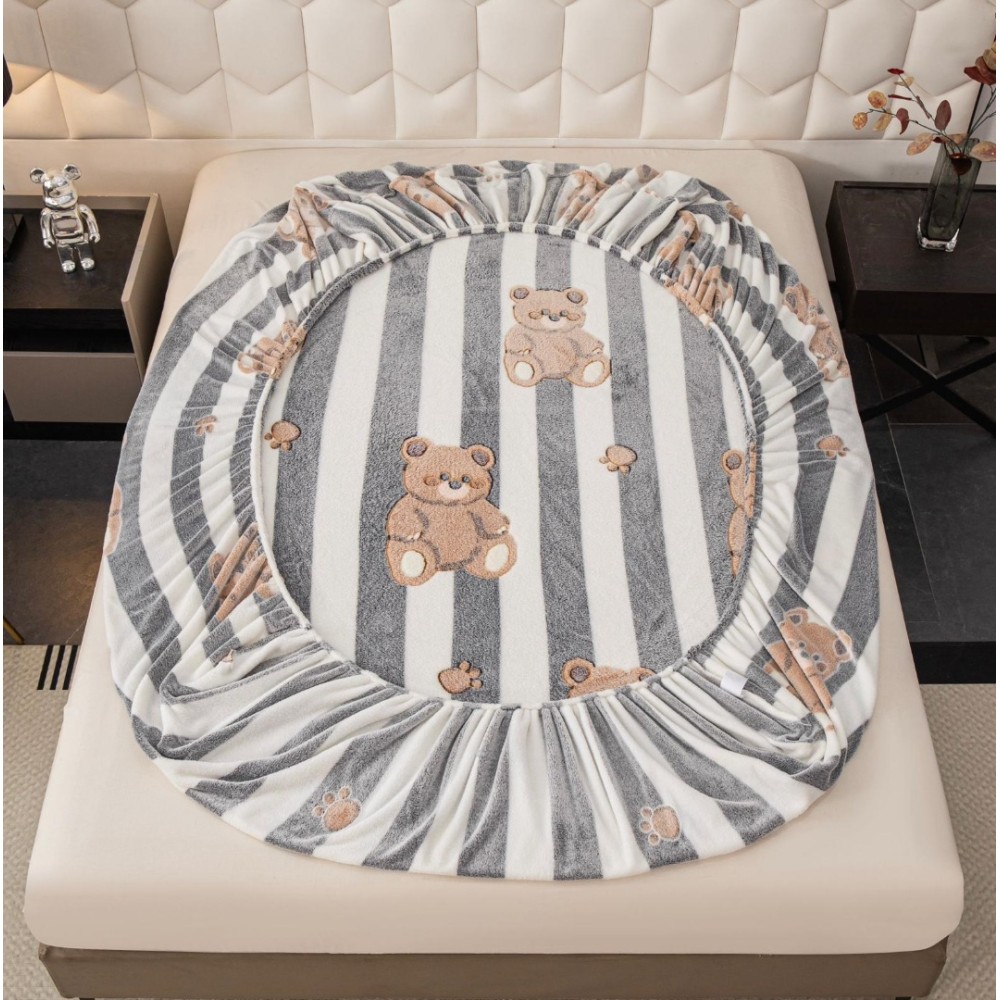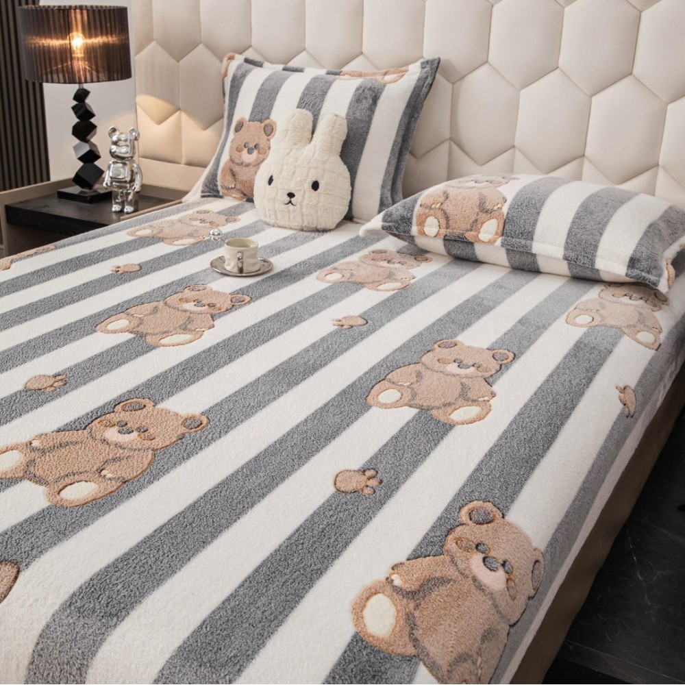 Cearsaf CoCoLiNo, JoJo Home, cu Elastic, 180x200x25cm, 2 fete de perne, 50x70cm, Alb, Gri, Dungi, Ursuleti, cod produs: JOJ-HCW-40