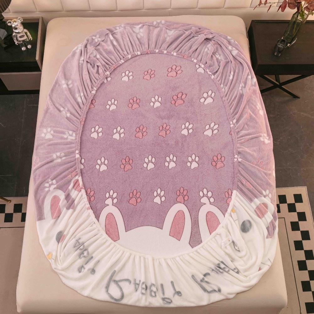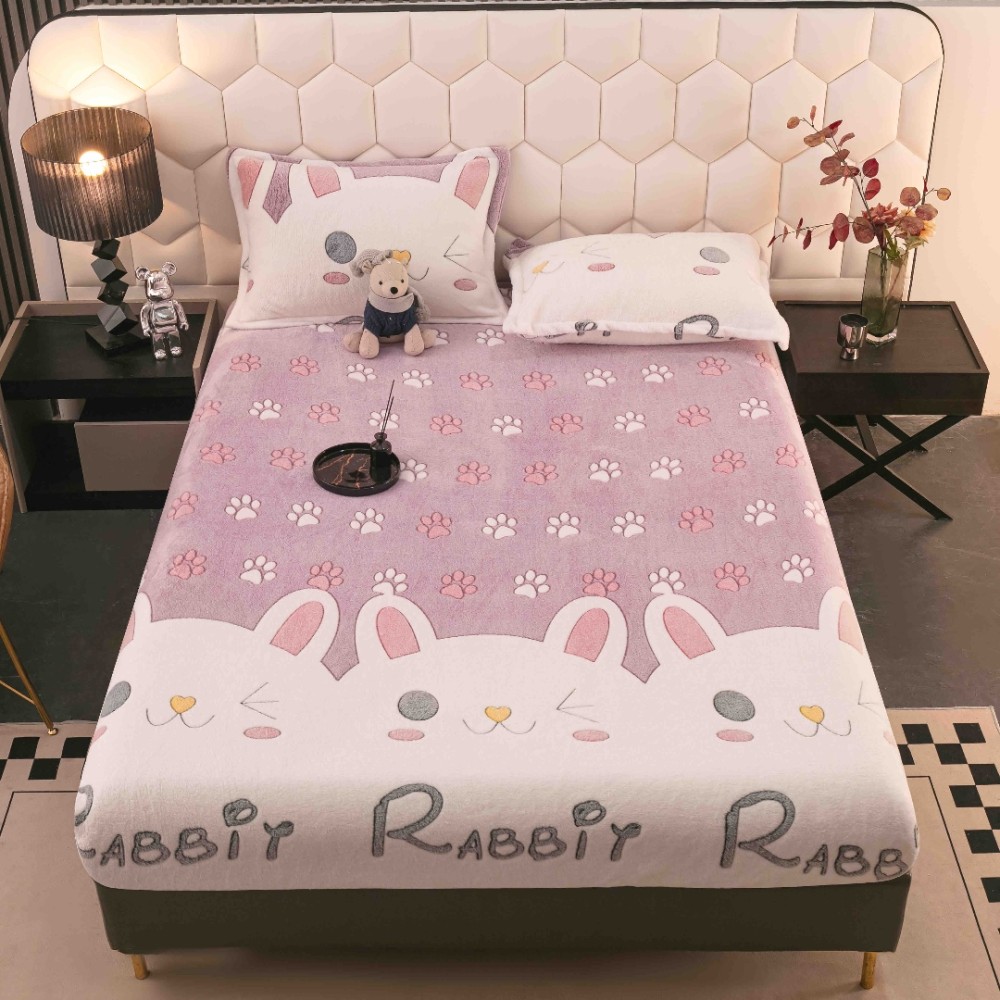 Cearsaf CoCoLiNo, JoJo Home, cu Elastic, 180x200x25cm, 2 fete de perne, 50x70cm, Alb, Roz, Iepurasi, cod produs: JOJ-HCW-24