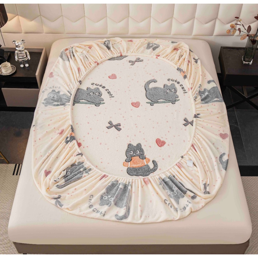 Cearsaf CoCoLiNo, JoJo Home, cu Elastic, 180x200x25cm, 2 fete de perne, 50x70cm, Crem, Pisicute, cod produs: JOJ-HCW-29