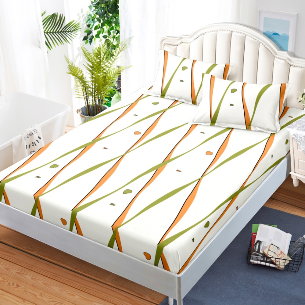 Cearsaf cu elastic, Bumbac FINET, 160x200cm, 2 fete de perne 50x70cm, Crem, Inimioare, Dungi, Super Design Pucioasa, cod produs: SDP-HH-119
