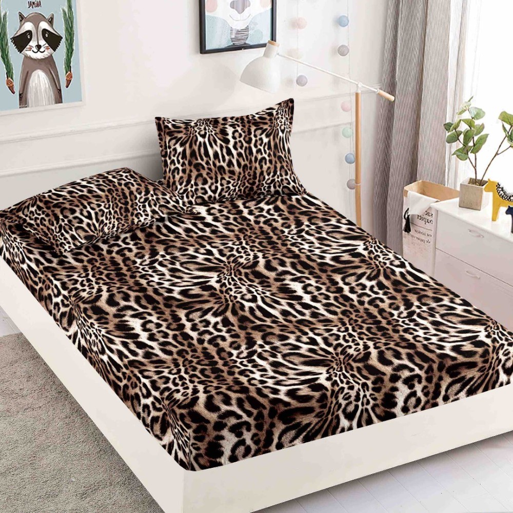 Cearsaf cu elastic, Bumbac FINET, 90x200cm, 2 fete de perne 50x70cm, Jojo Home, Maro, Animal Print, cod produs: JOJ-1P-12