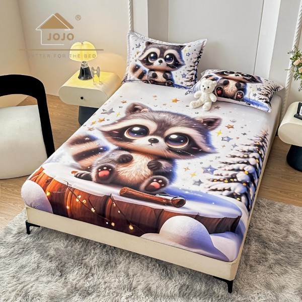 Cearsaf cu elastic, Bumbac FINET, Imprimeu 5D Identic cu Poza, 160x200cm, 2 fete de perne 50x70cm, Jojo Home, Alb, Raton, cod produs: JOJ-5HD-14