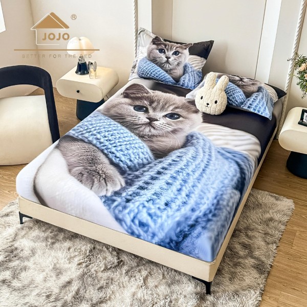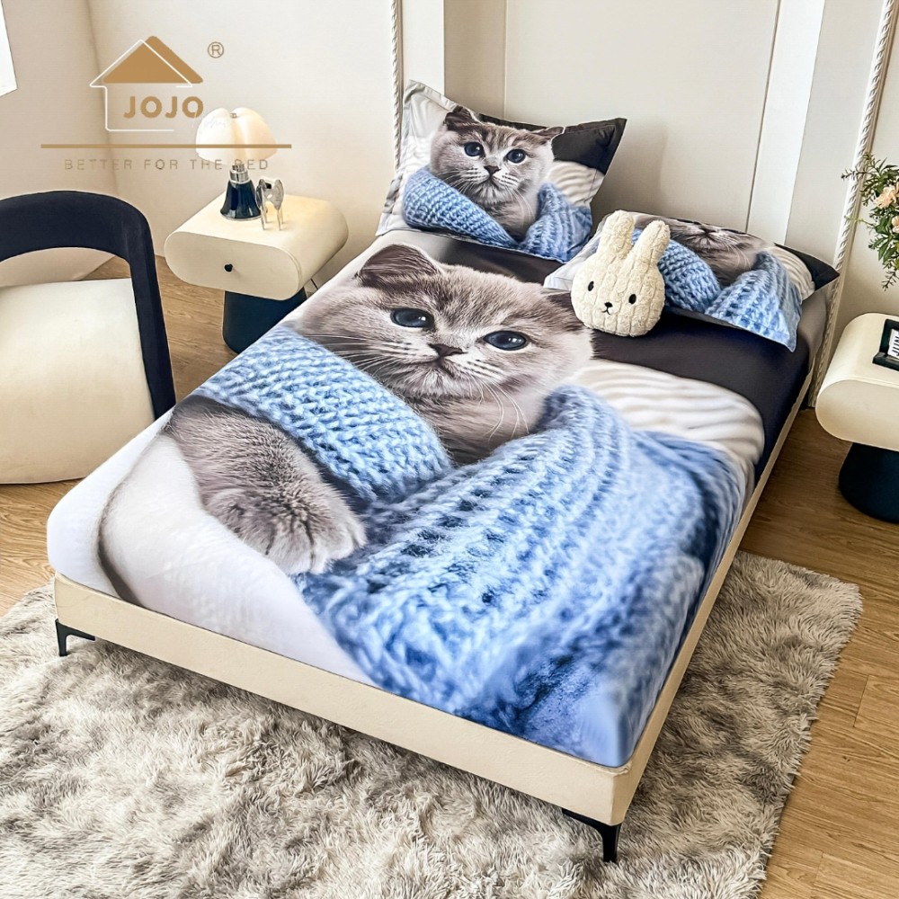 Husa de Pat din Bumbac Tip Finet cu imprimeu 5D, oferă protecție completă și un aspect elegant. Moale și respirabilă, ideală pentru orice sezon, vine în set cu două fețe de pernă asortate. Culori rezistente la spălări, material plăcut la atingere și confort garantat.