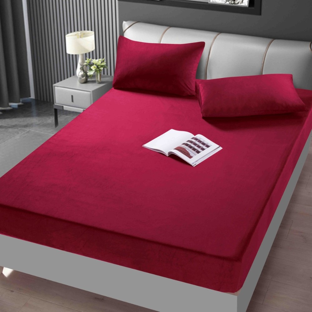 Cearsaf cu elastic, Catifea, 160/180x200cm, 2 fete de perne 50x70cm, Jojo Home, Rosu, cod produs: JOJ-HCR-13