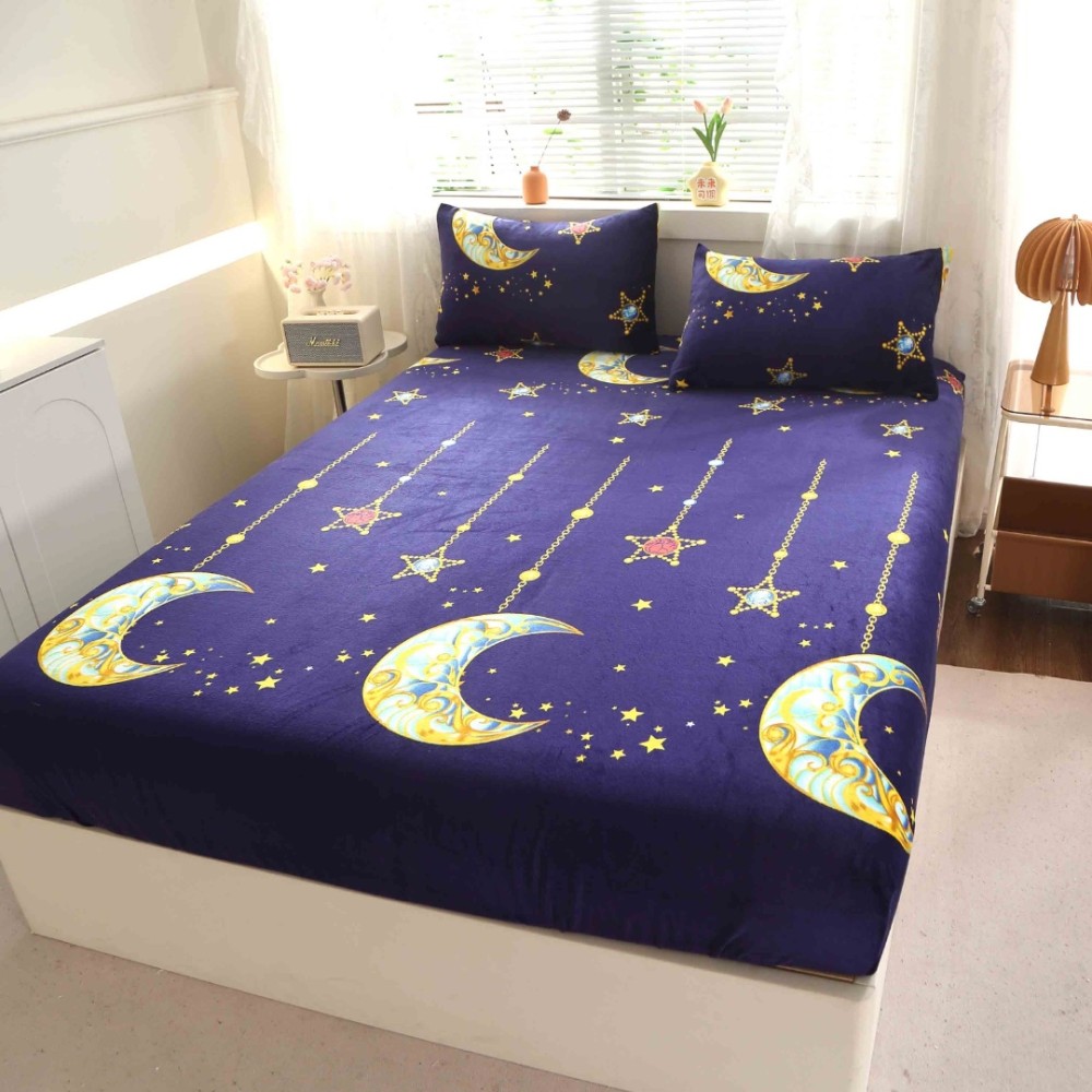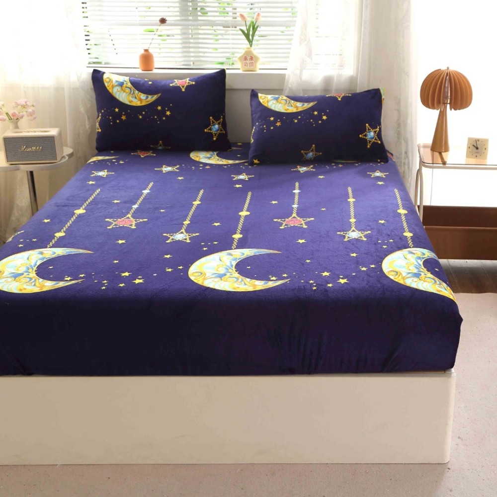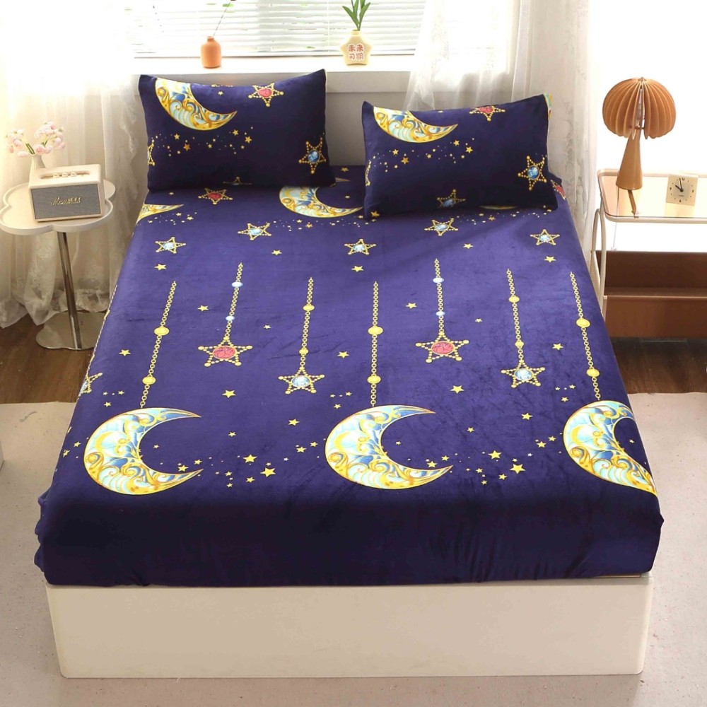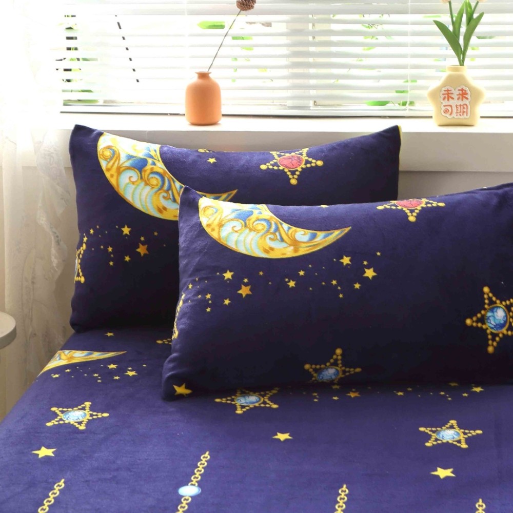 Cearsaf cu Elastic Cocolino 180x200cm si 2 fete de perna 50x70cm, Albastru, stelute si luna, Casa Creative Elegance Pucioasa, cod produs: BCC-HCE37