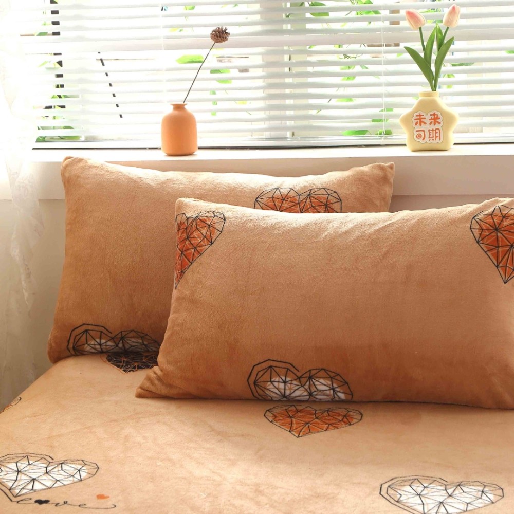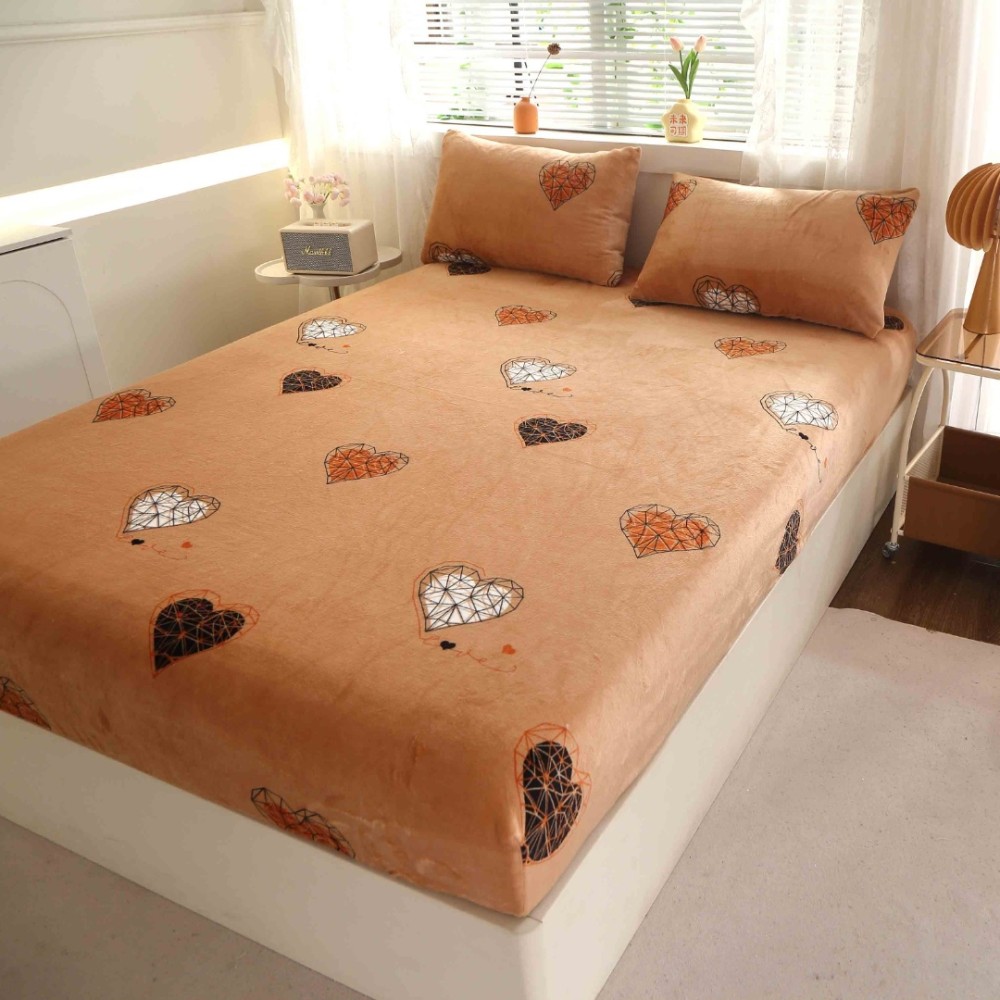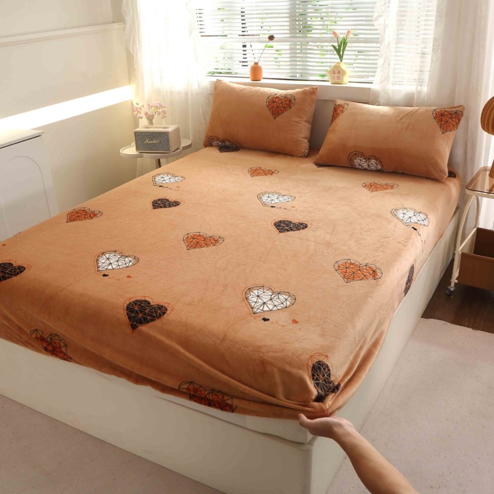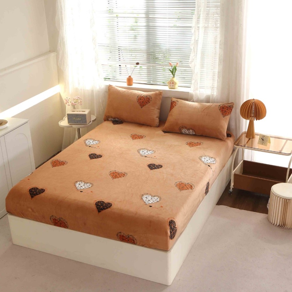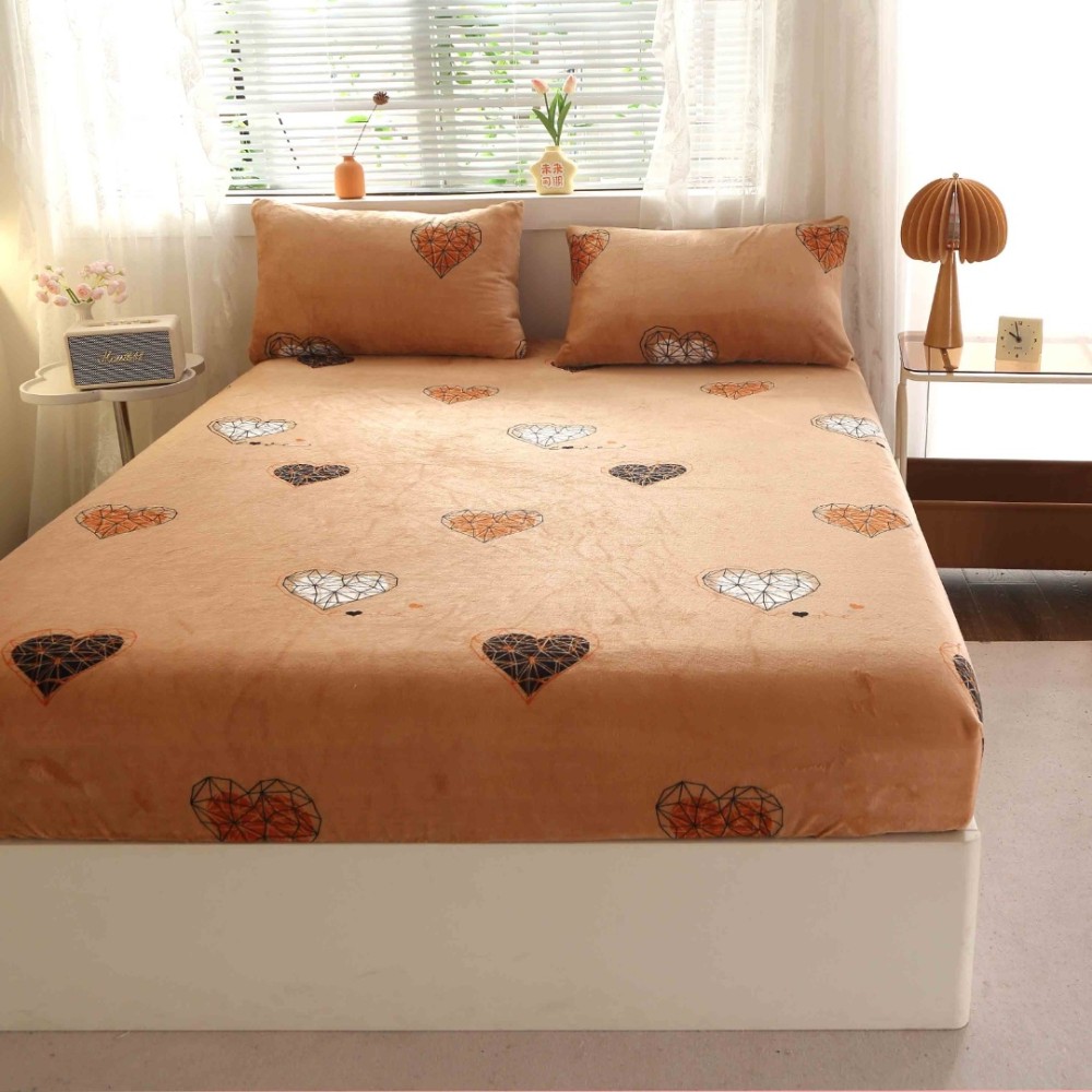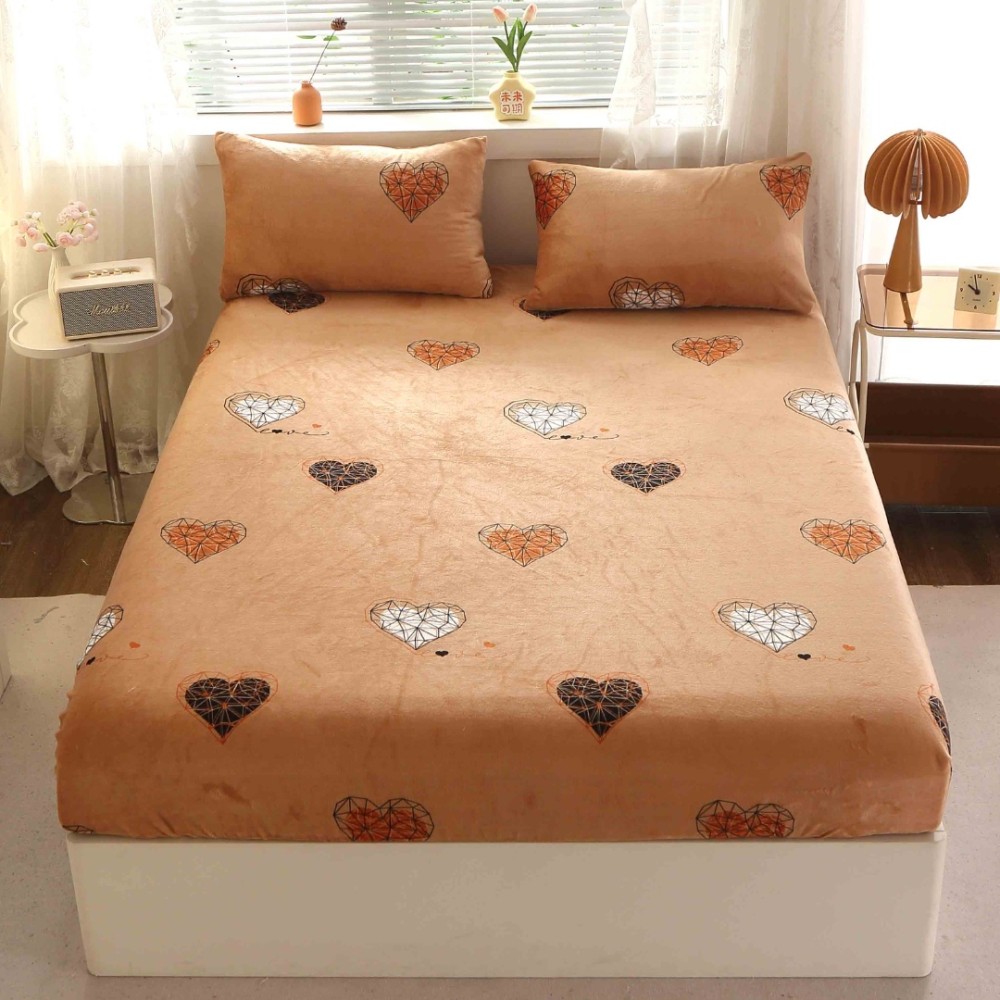 Cearsaf cu Elastic Cocolino 180x200cm si 2 fete de perna 50x70cm, Bej, inimioare, Casa Creative Elegance Pucioasa, cod produs: BCC-HCE40