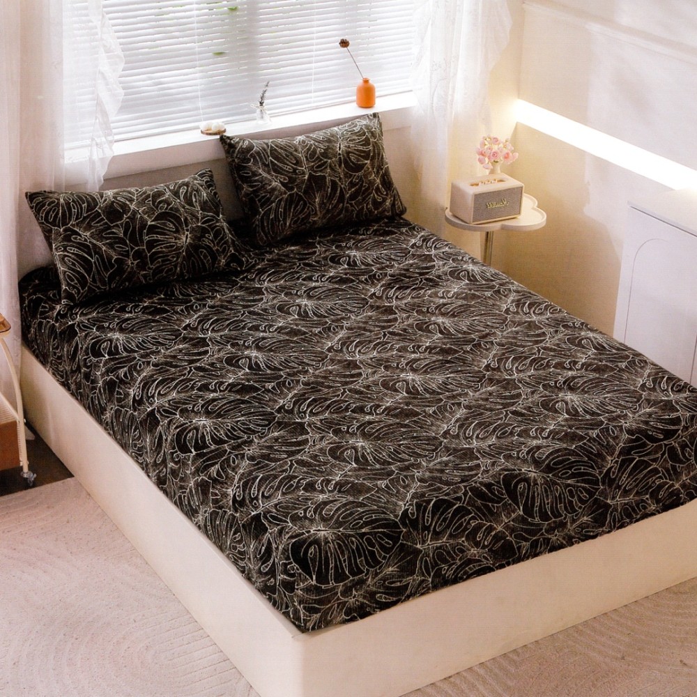 Cearsaf cu Elastic Cocolino 180x200cm si 2 fete de perna 50x70cm, Negru, Alb, Frunze, Casa Creative Elegance Pucioasa, cod produs: BCC-HCE13