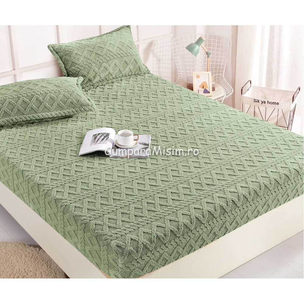 Cearsaf cu elastic Cocolino, gros, pufos, moale si fin, ideal pentru o saltea de 180x200cm, cu inaltime clasica de 25cm si doua fete de perna 50x70cm.