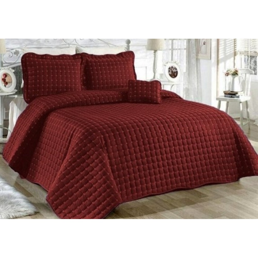 Cuvertura Brodata pat dublu cu 3 fete de perna, grena, Casa Sabry, cod produs: SBR-CVM-16